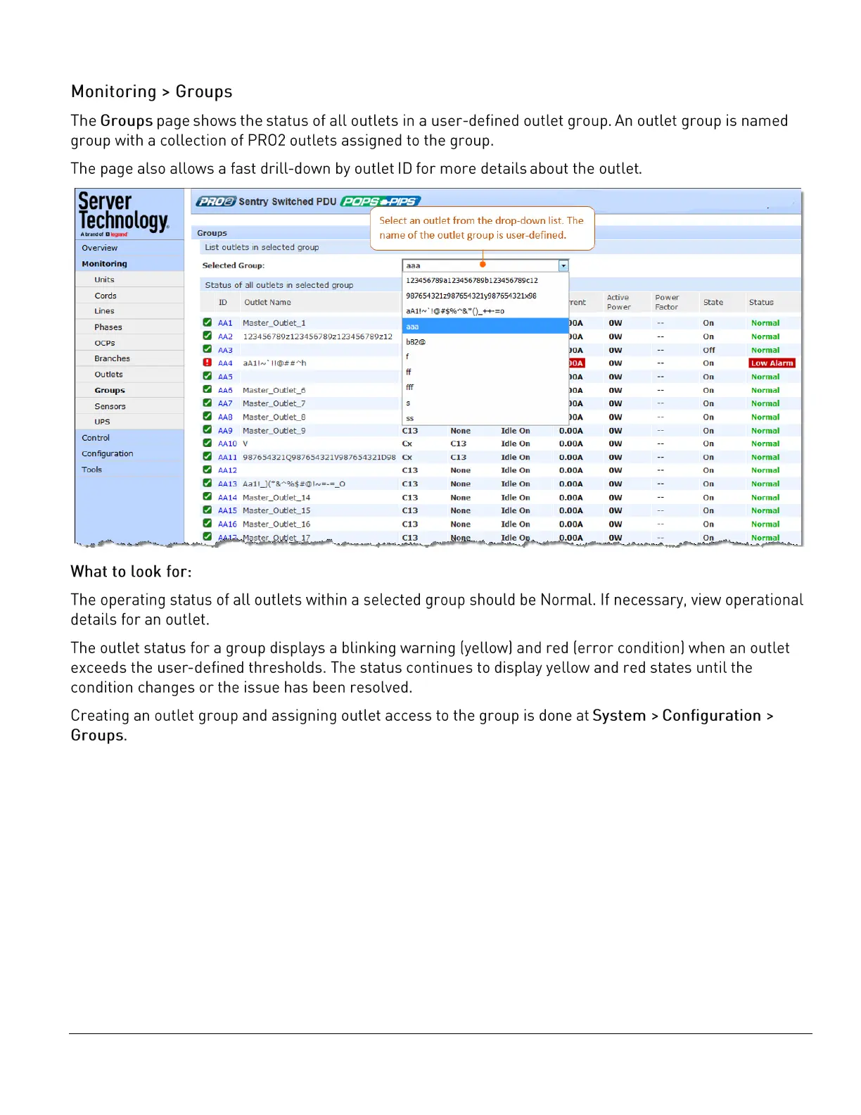 Server Technology PRO2 - Monitoring > Groups