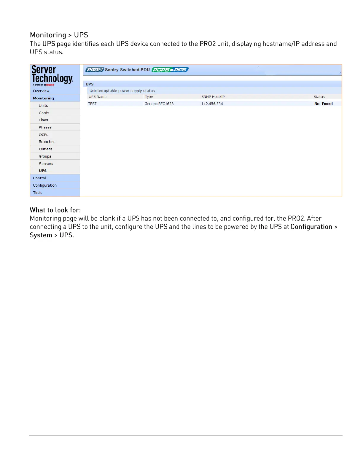 Server Technology PRO2 - Monitoring > UPS