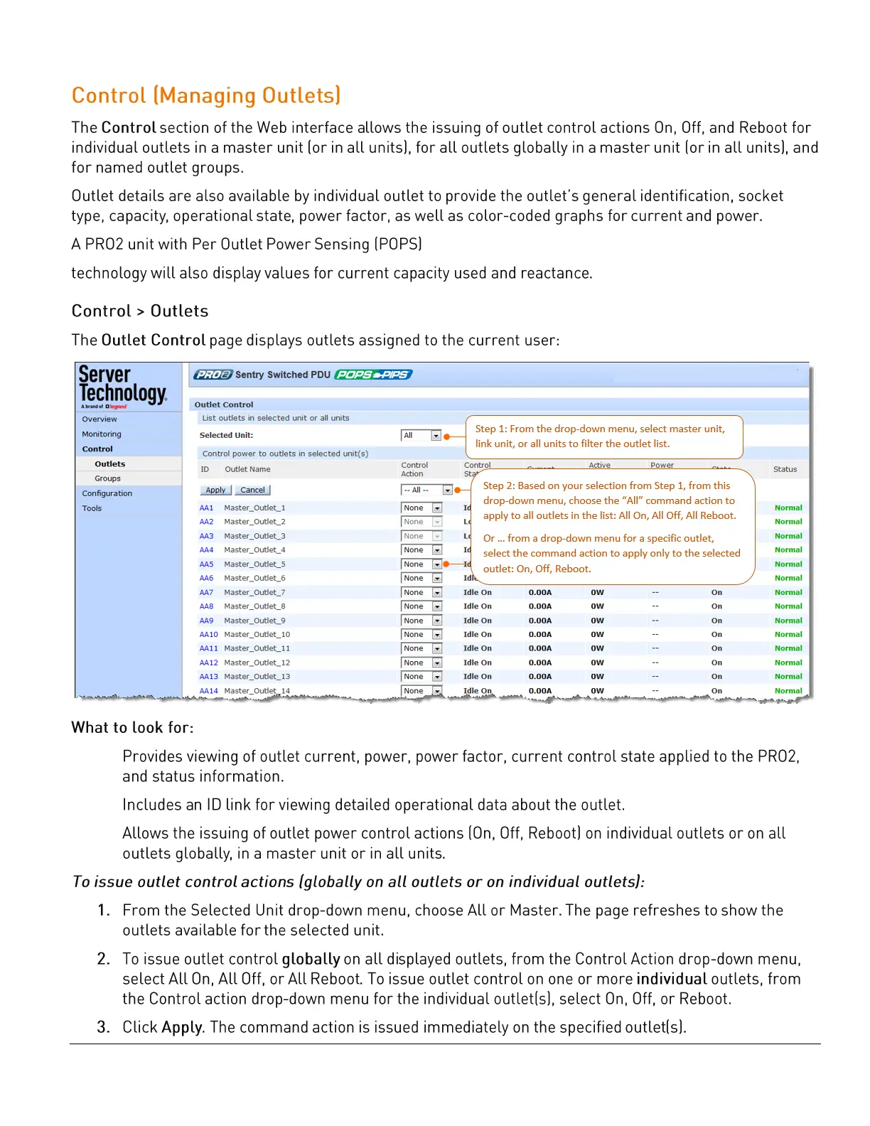 Server Technology PRO2 - Control (Managing Outlets); Control > Outlets