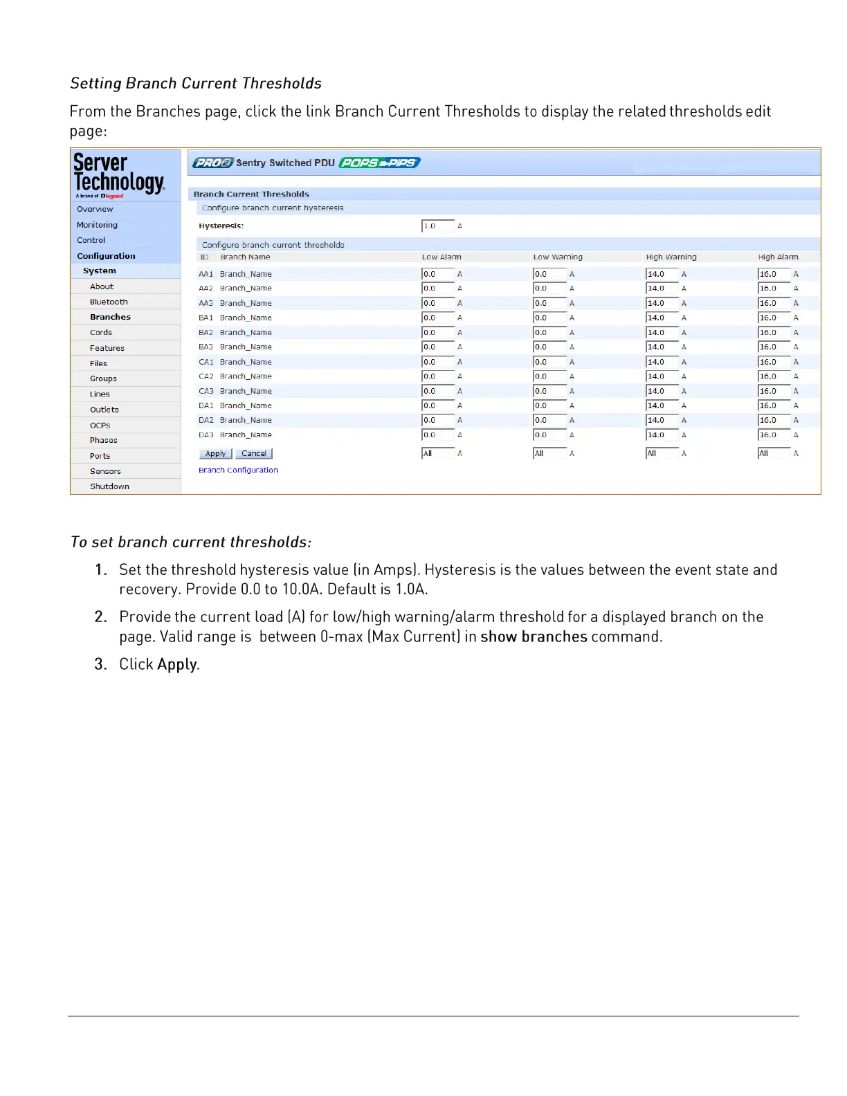 Server Technology PRO2 - Setting Branch Current Thresholds
