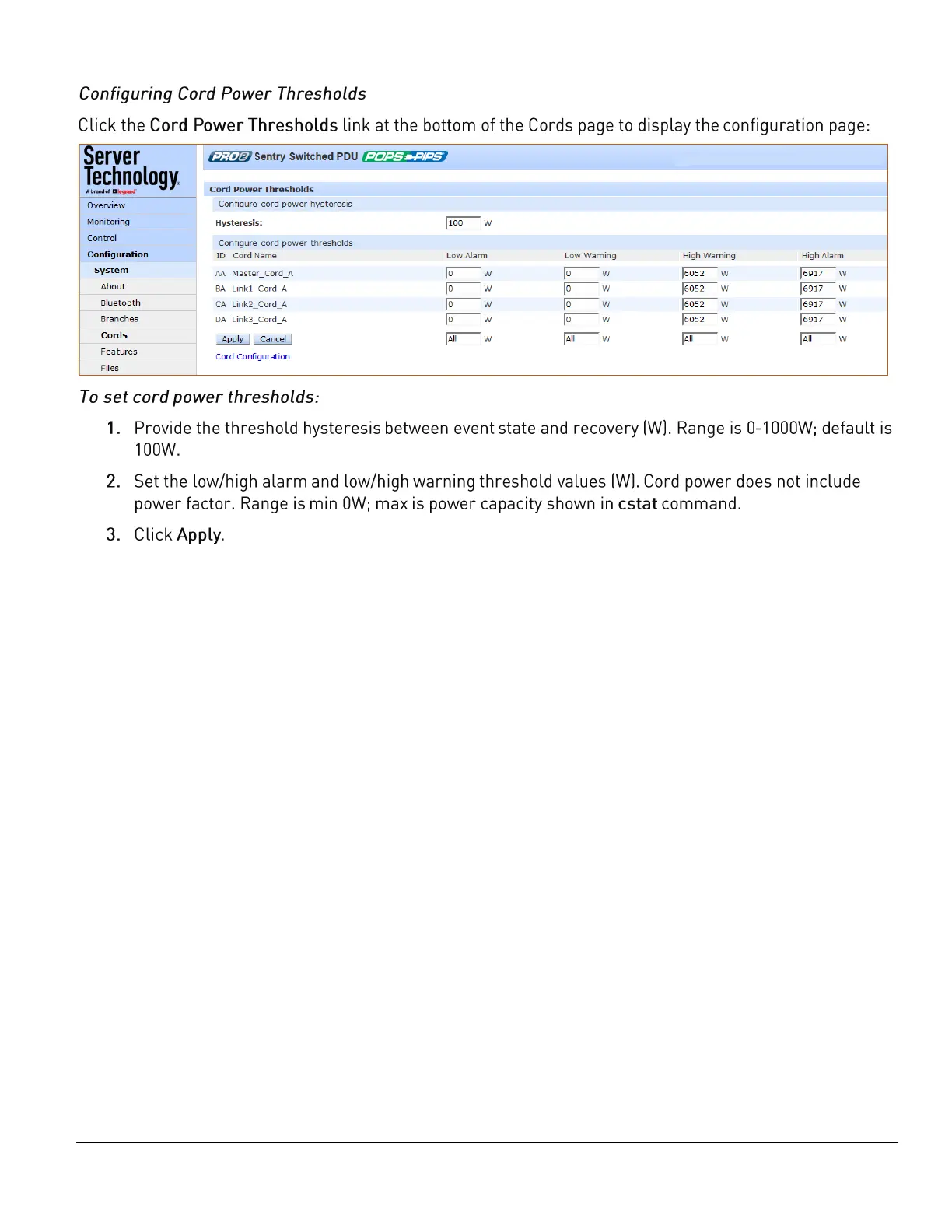 Server Technology PRO2 - Configuring Cord Power Thresholds