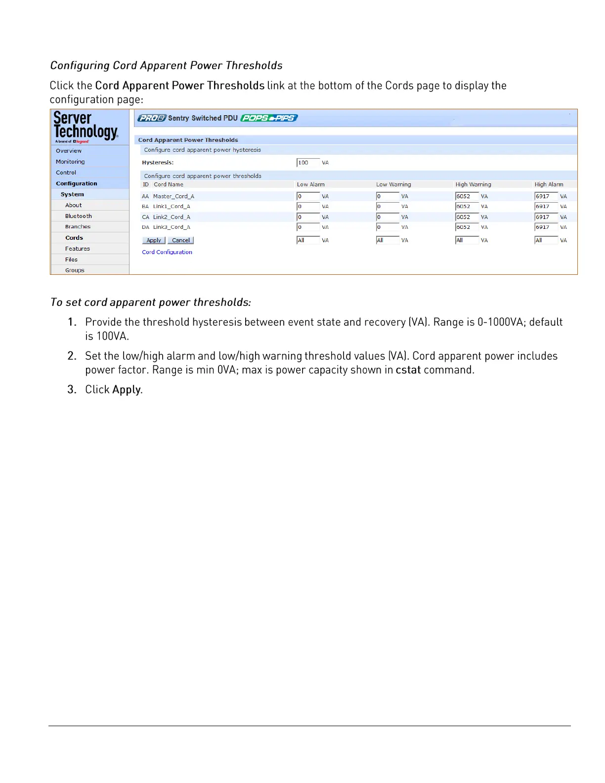 Server Technology PRO2 - Configuring Cord Apparent Power Thresholds