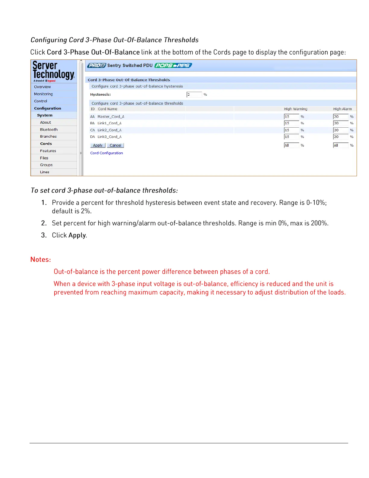 Server Technology PRO2 - Configuring Cord 3-Phase Out-Of-Balance Thresholds