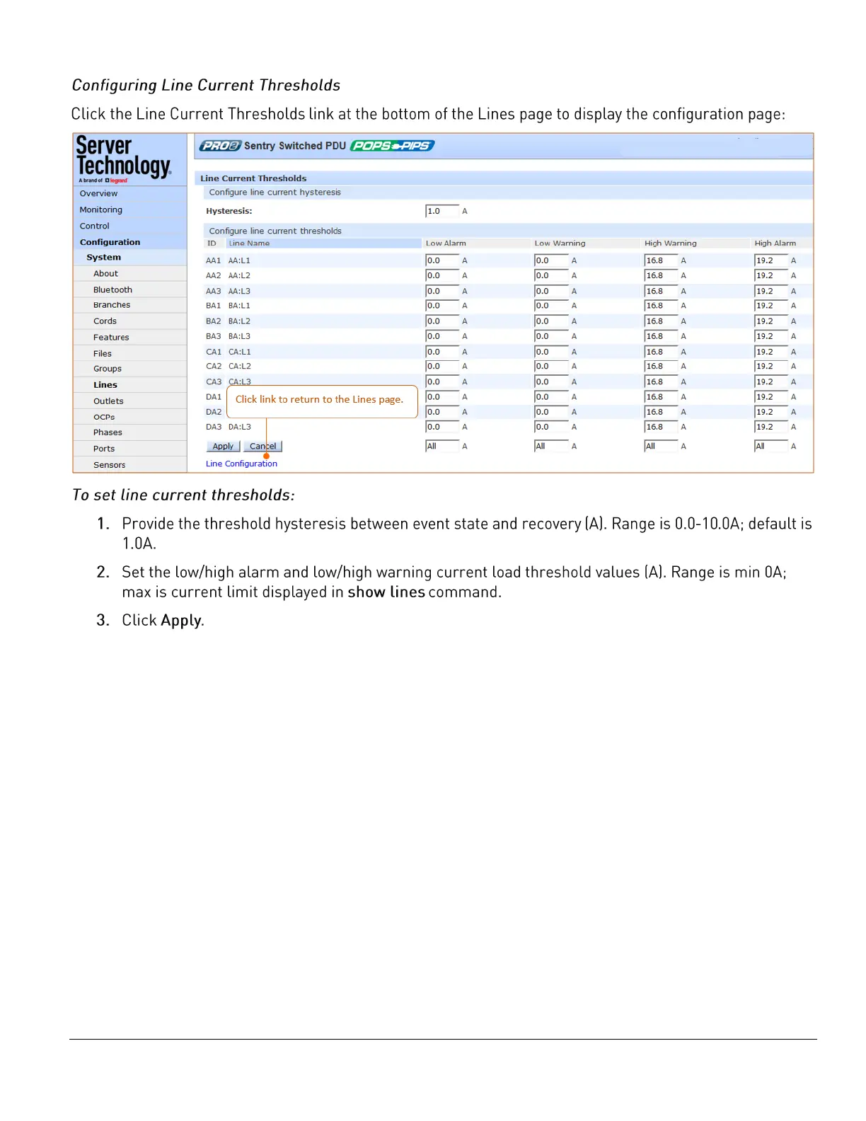 Server Technology PRO2 - Configuring Line Current Thresholds
