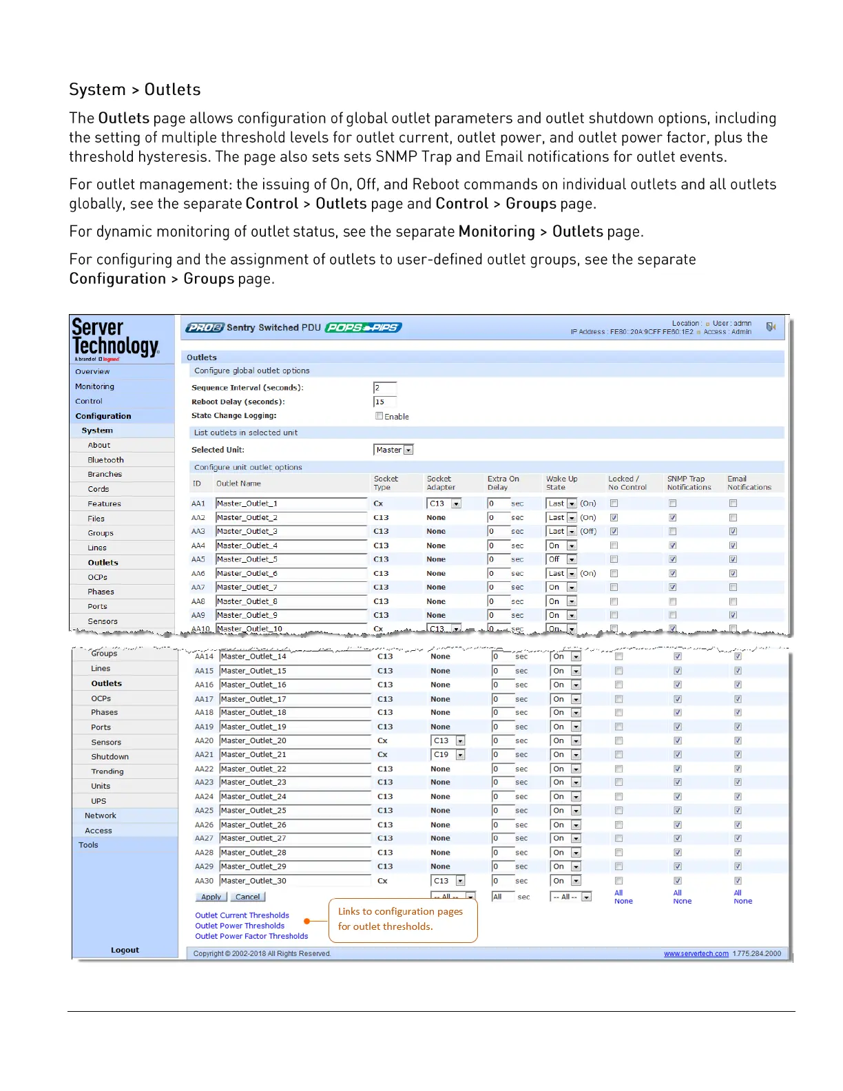 Server Technology PRO2 - System > Outlets