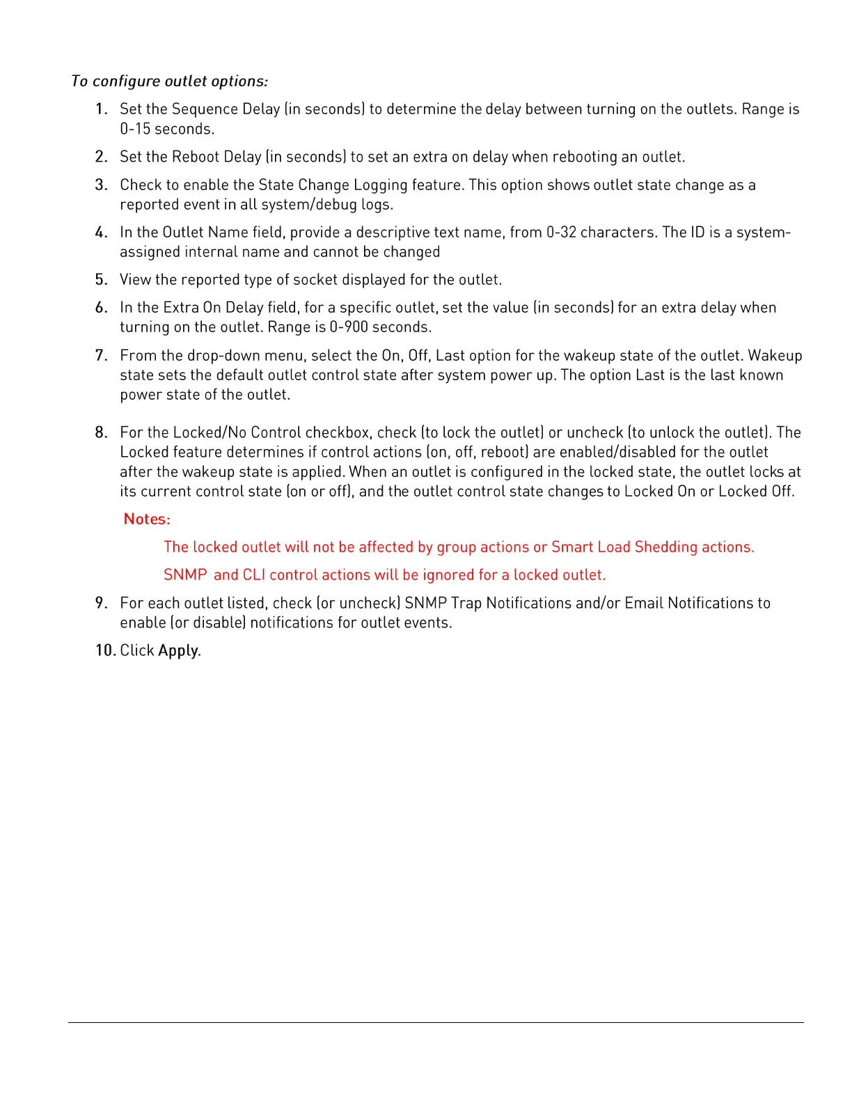 Server Technology PRO2 - To configure outlet options: