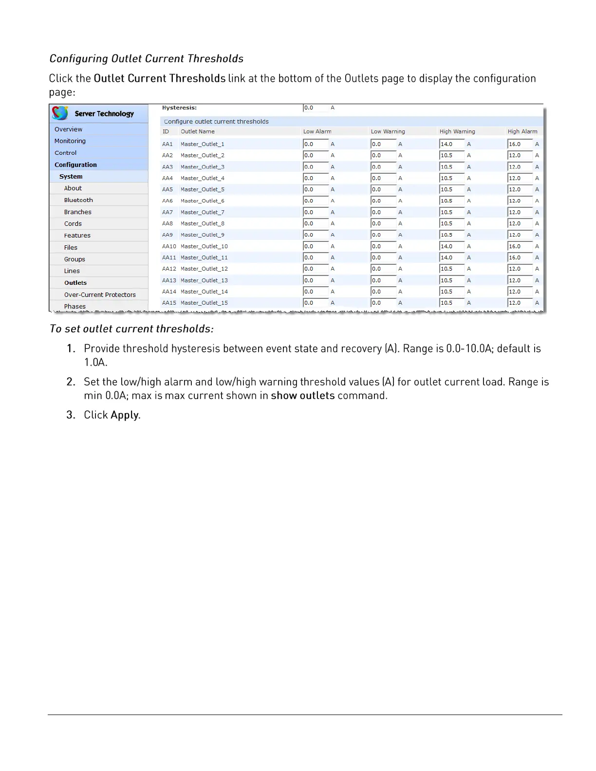 Server Technology PRO2 - Configuring Outlet Current Thresholds