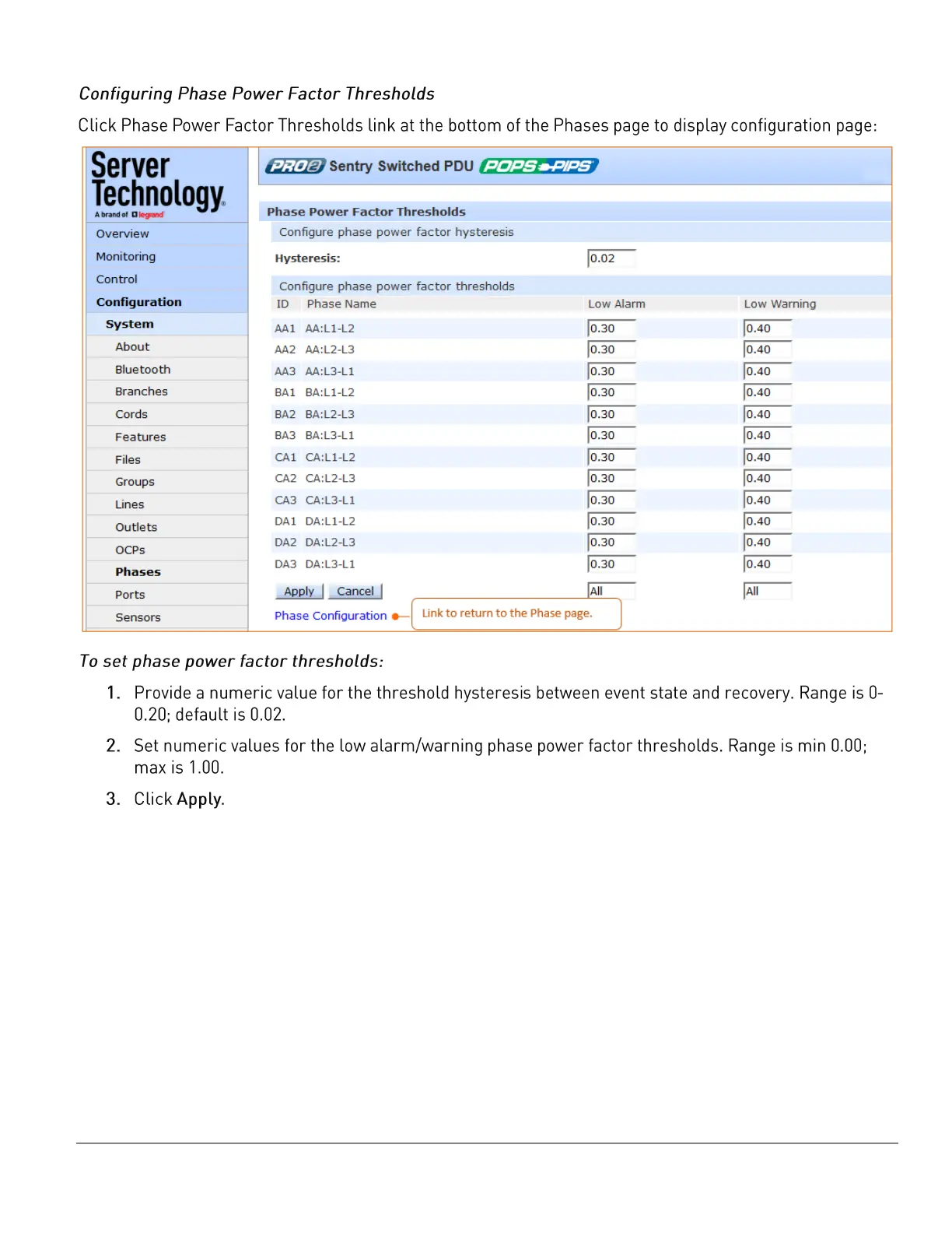 Server Technology PRO2 - Configuring Phase Power Factor Thresholds