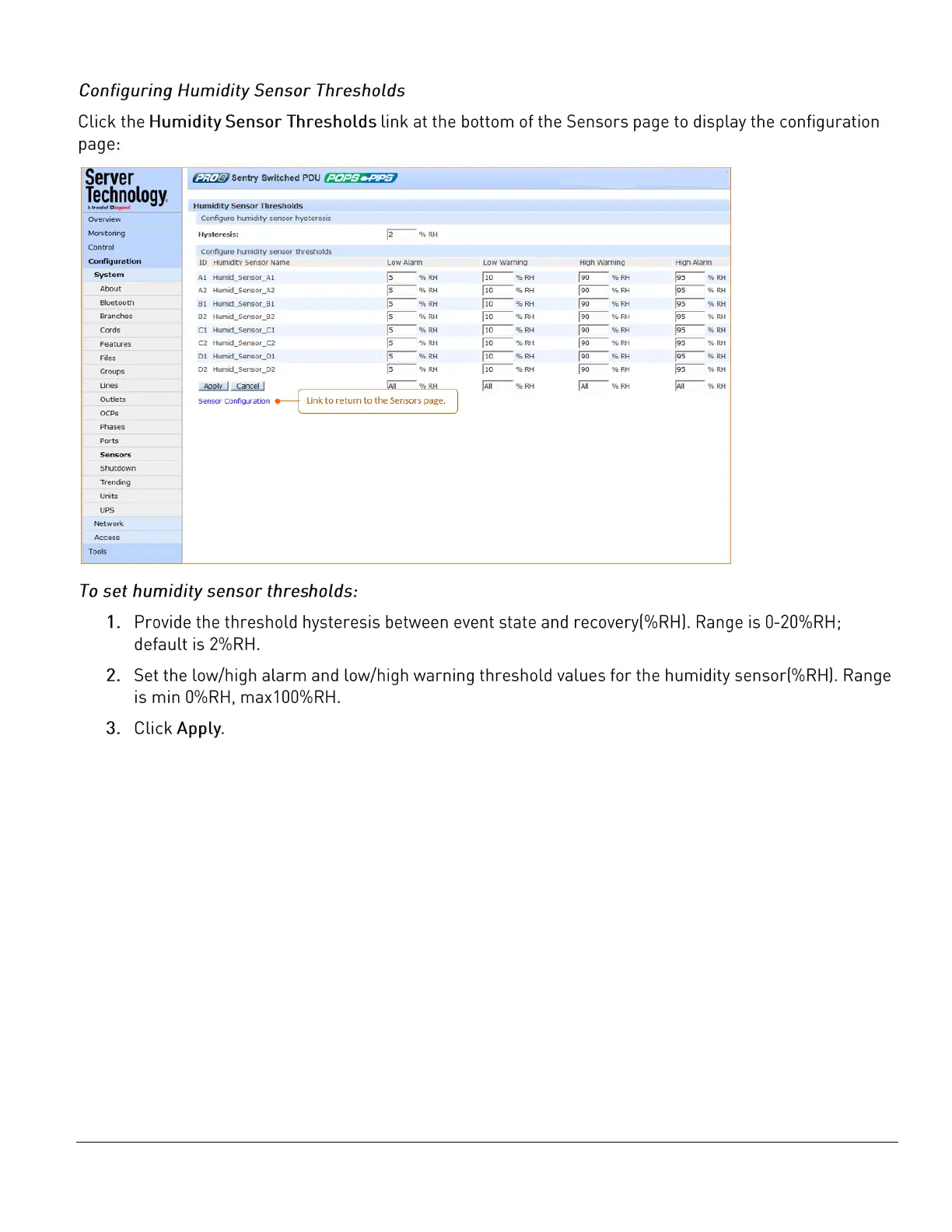 Server Technology PRO2 - Configuring Humidity Sensor Thresholds