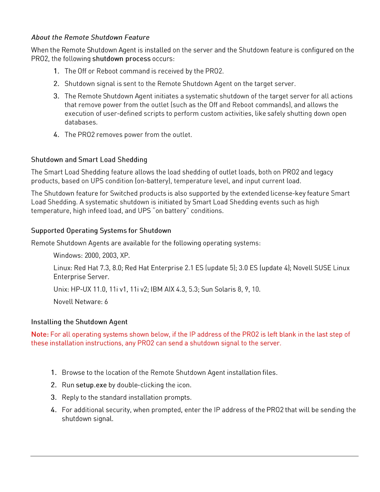 Server Technology PRO2 - About the Remote Shutdown Feature; Supported Operating Systems for Shutdown; Installing the Shutdown Agent; Windows
