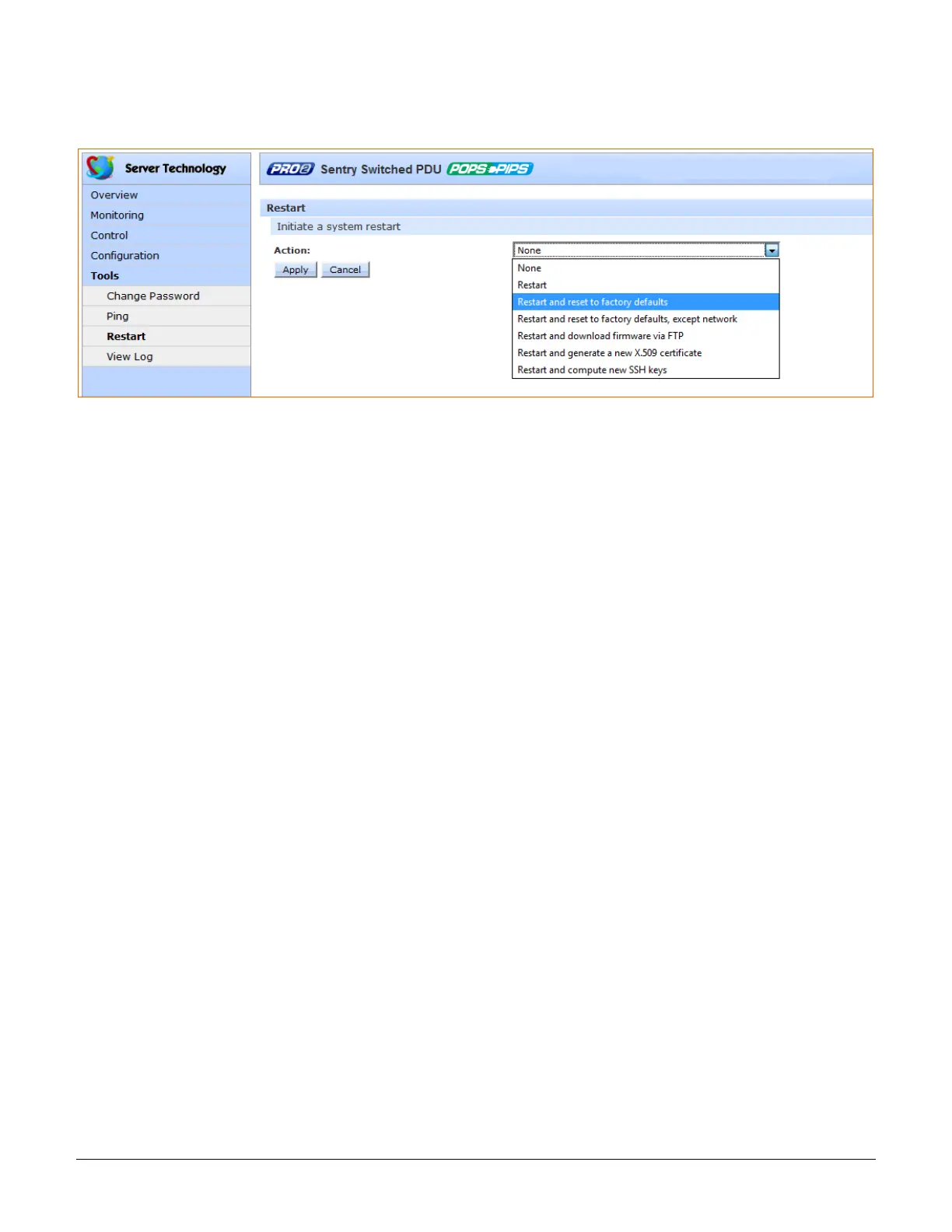 1. From the Action drop-down menu, select a restart option as described in the table below.