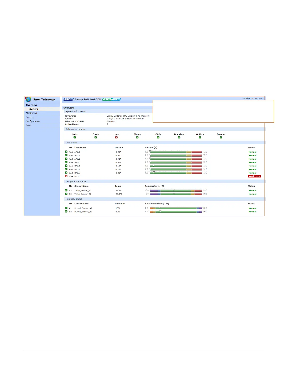 power distribution changes in hi-density environments. High-level status information on the System page gives the