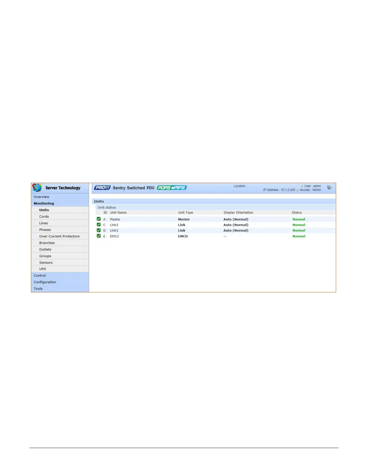 providing a separate and detailed page for the overall status of units, cords, lines, OCPs, branches, outlets, groups,