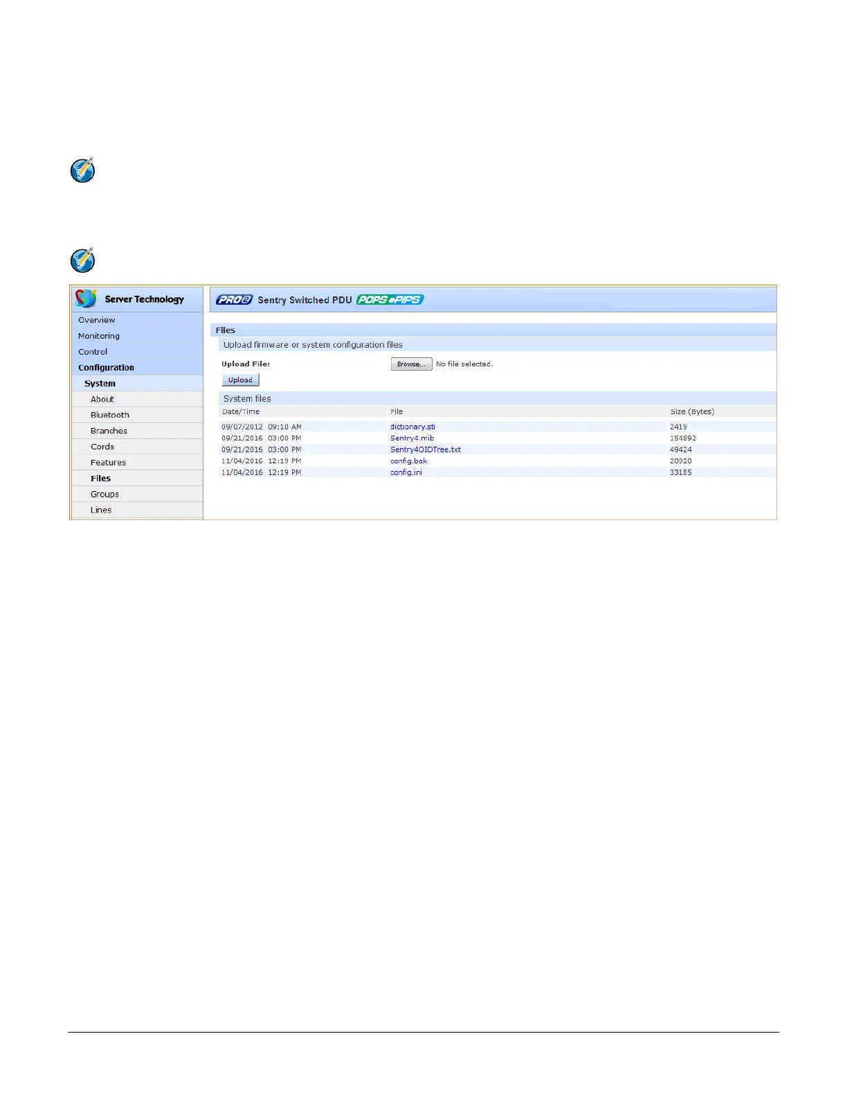Simple file upload without the need for FTP. Upload a firmware version or specific system configuration file by