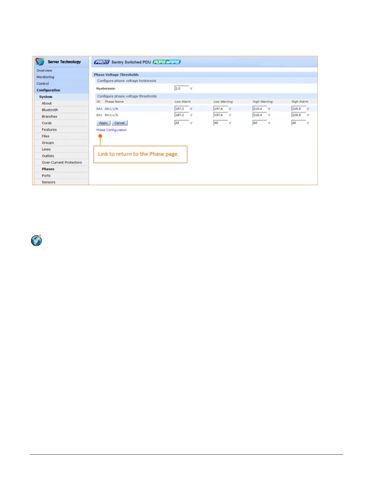Click the phase voltage thresholds link at the bottom of the Phases page to display the configuration page: