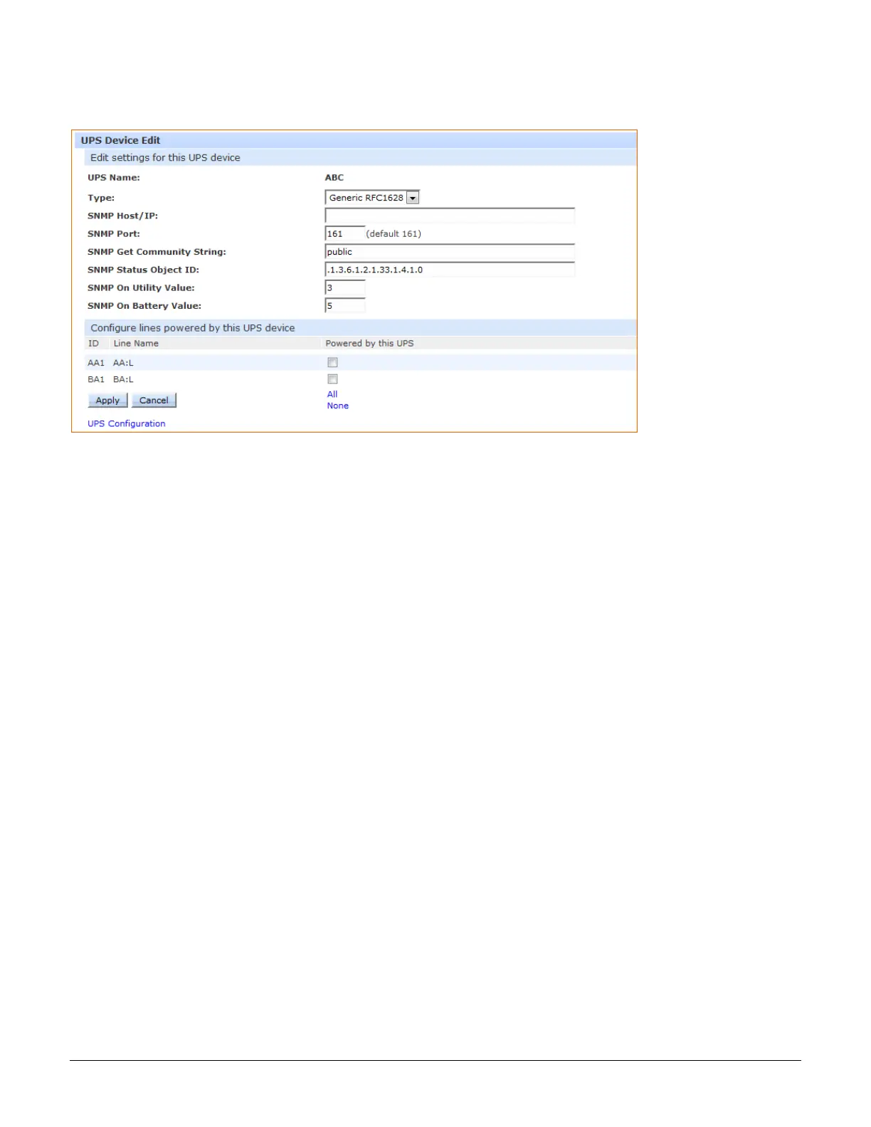 For a UPS listed on the page, click the Edit link to display the edit window: