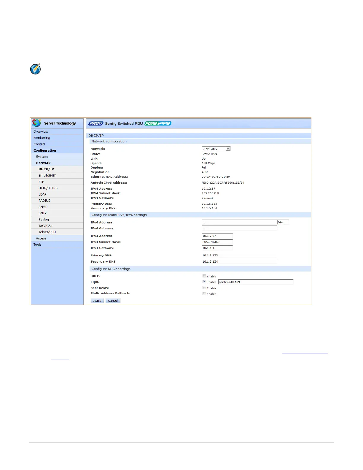 Network > DHCP/IP