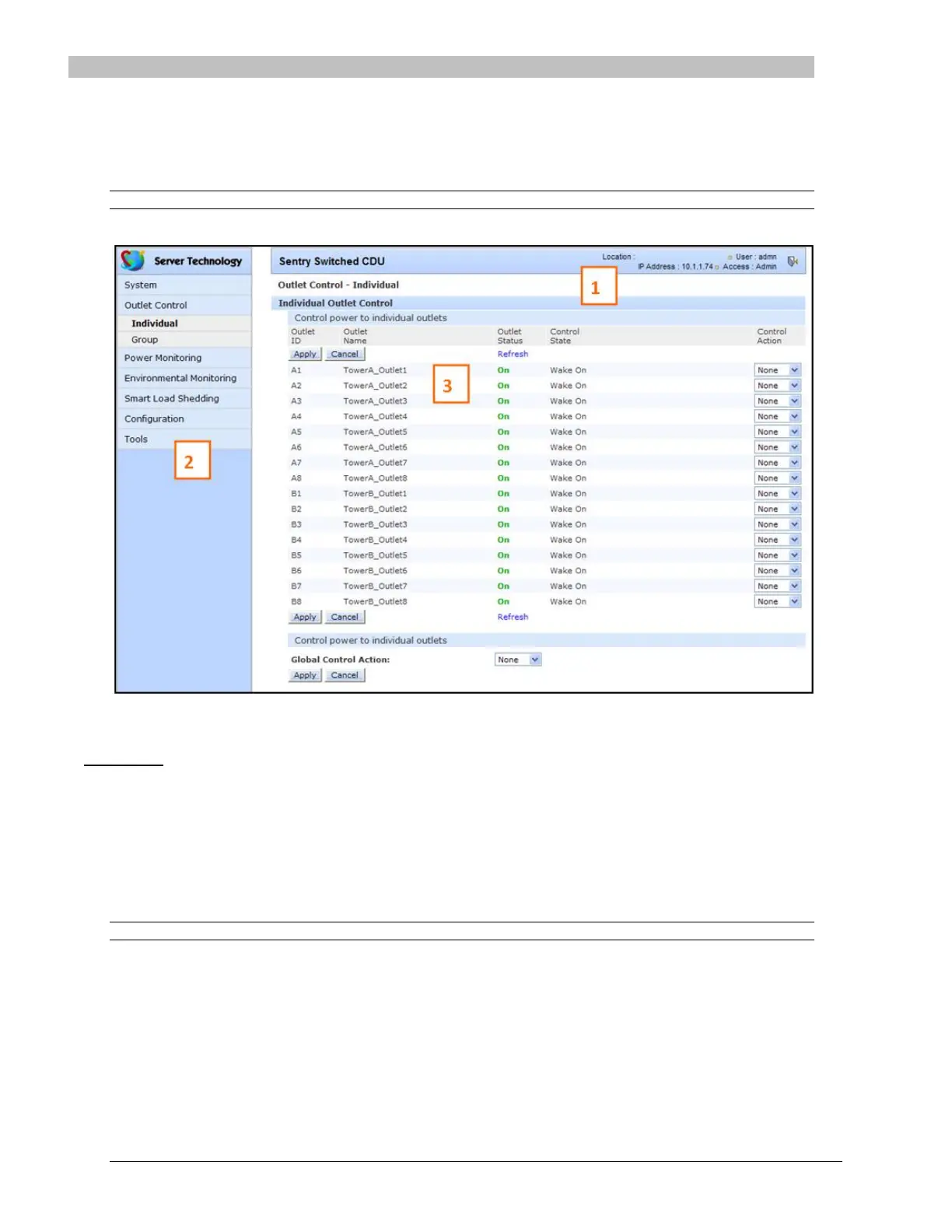 This example shows the Outlet Control > Individual page: