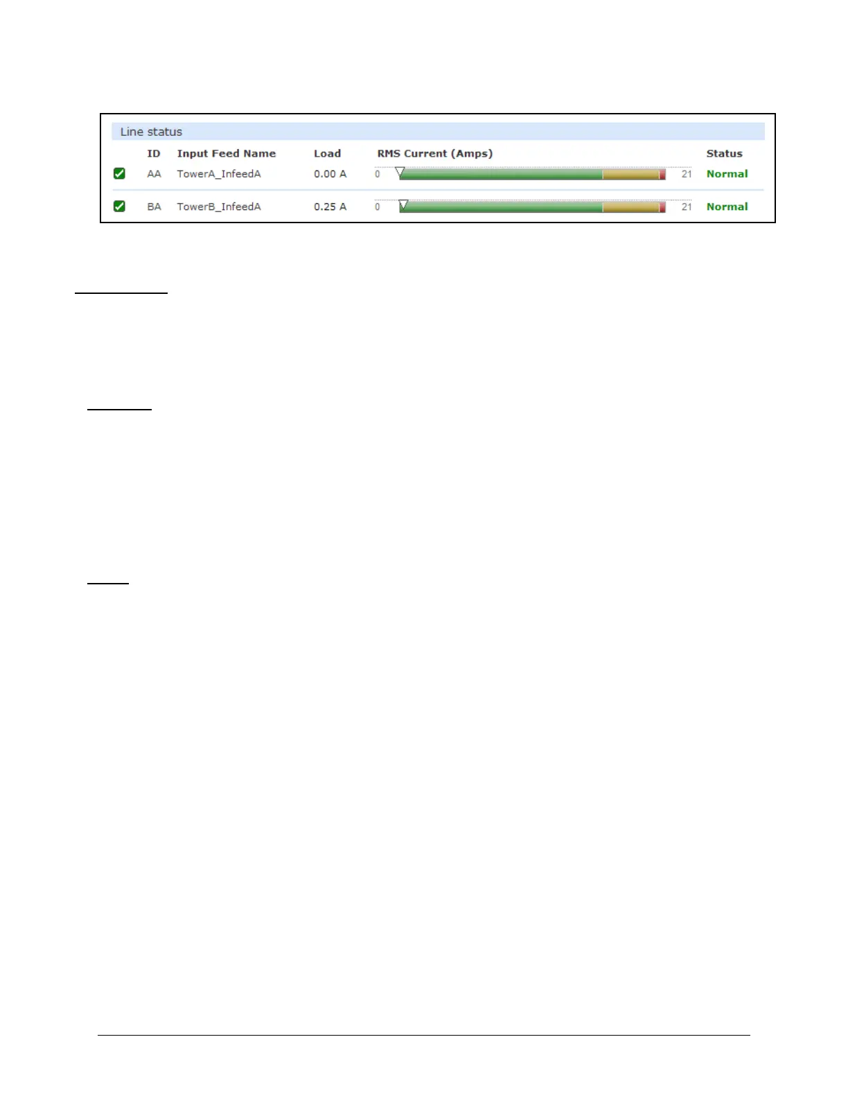 the outlet, the current Control State being applied by the PDU, and the outlet load in amperes.