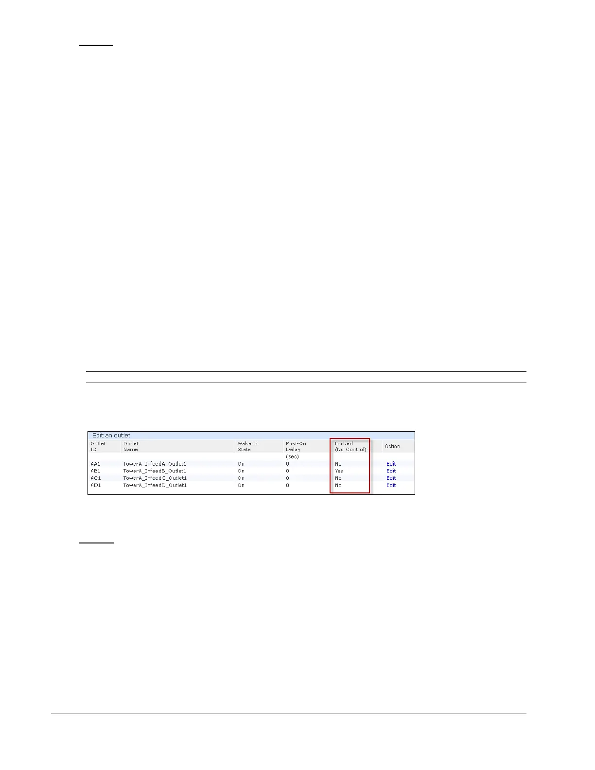 group actions or Smart Load Shedding actions. SNMP and CLI control actions will be ignored for a locked outlet.