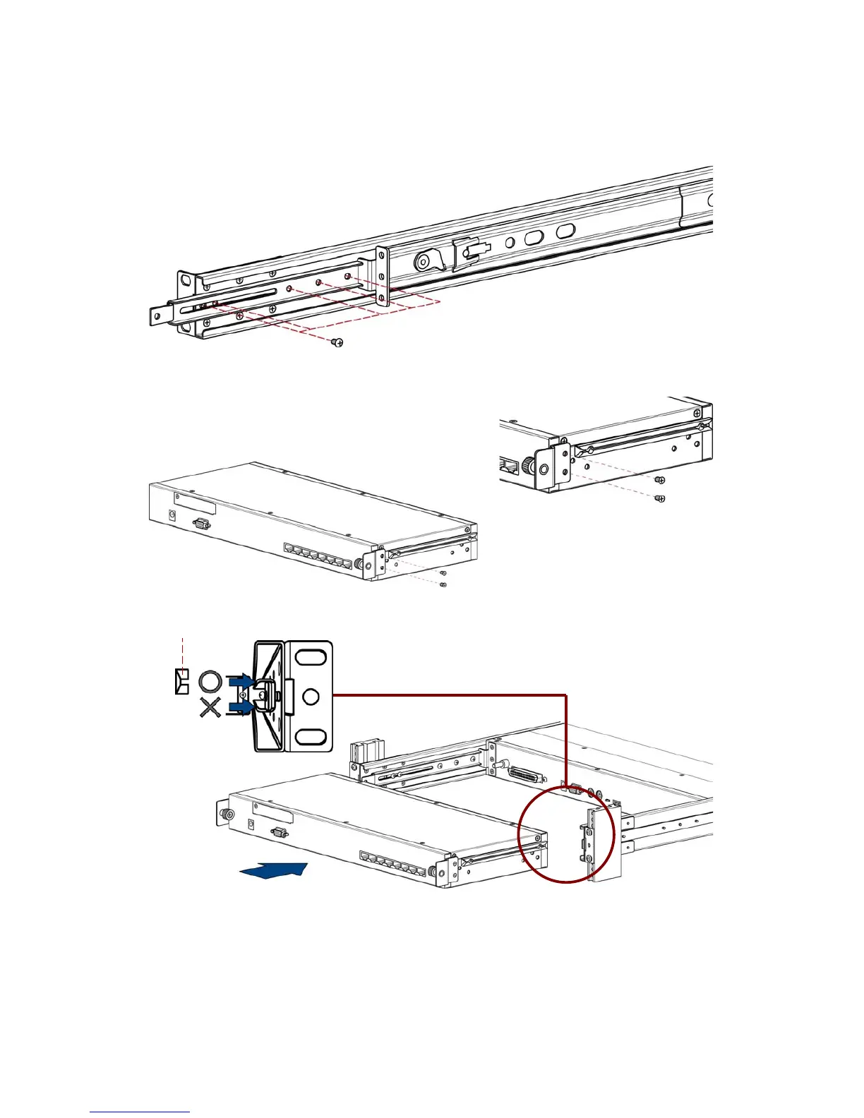 5. Push KVM switch into the rails from rear of console