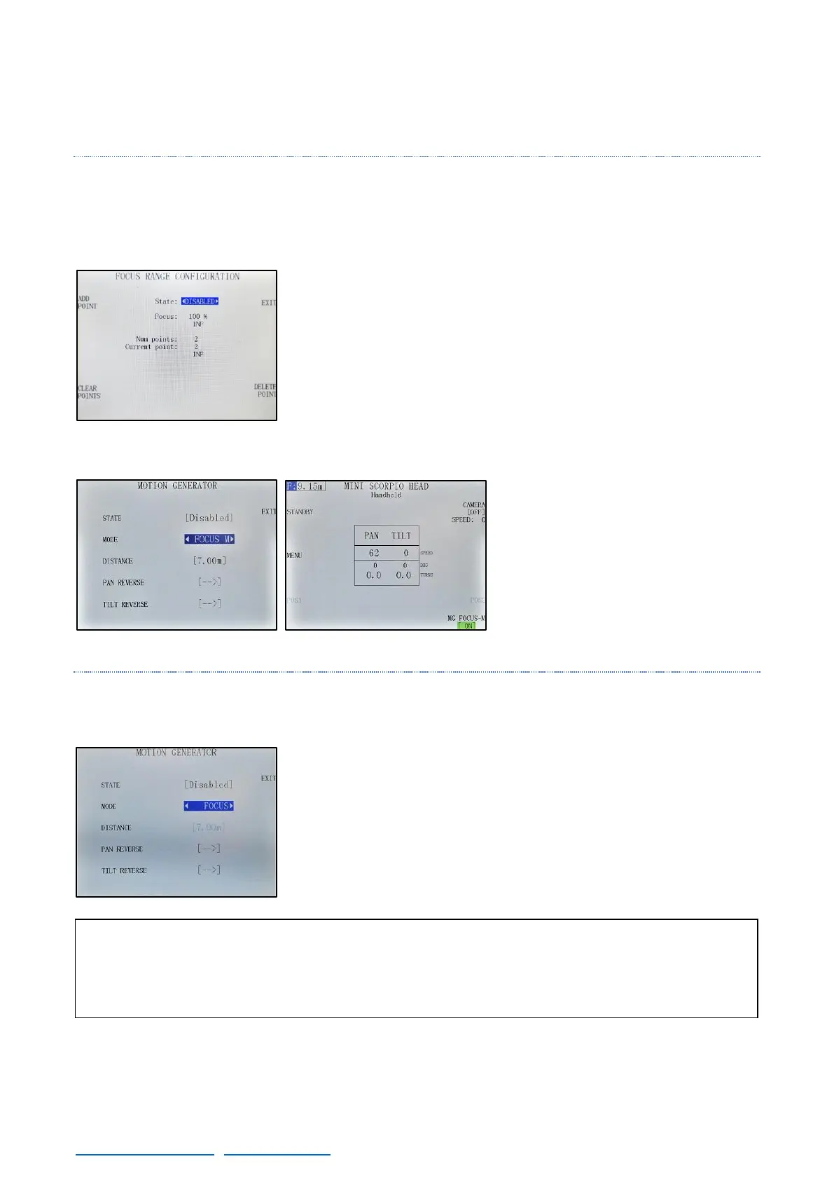 To use the Focus function, a Scorpio Focus needs to be connected to the system and the focal lengths