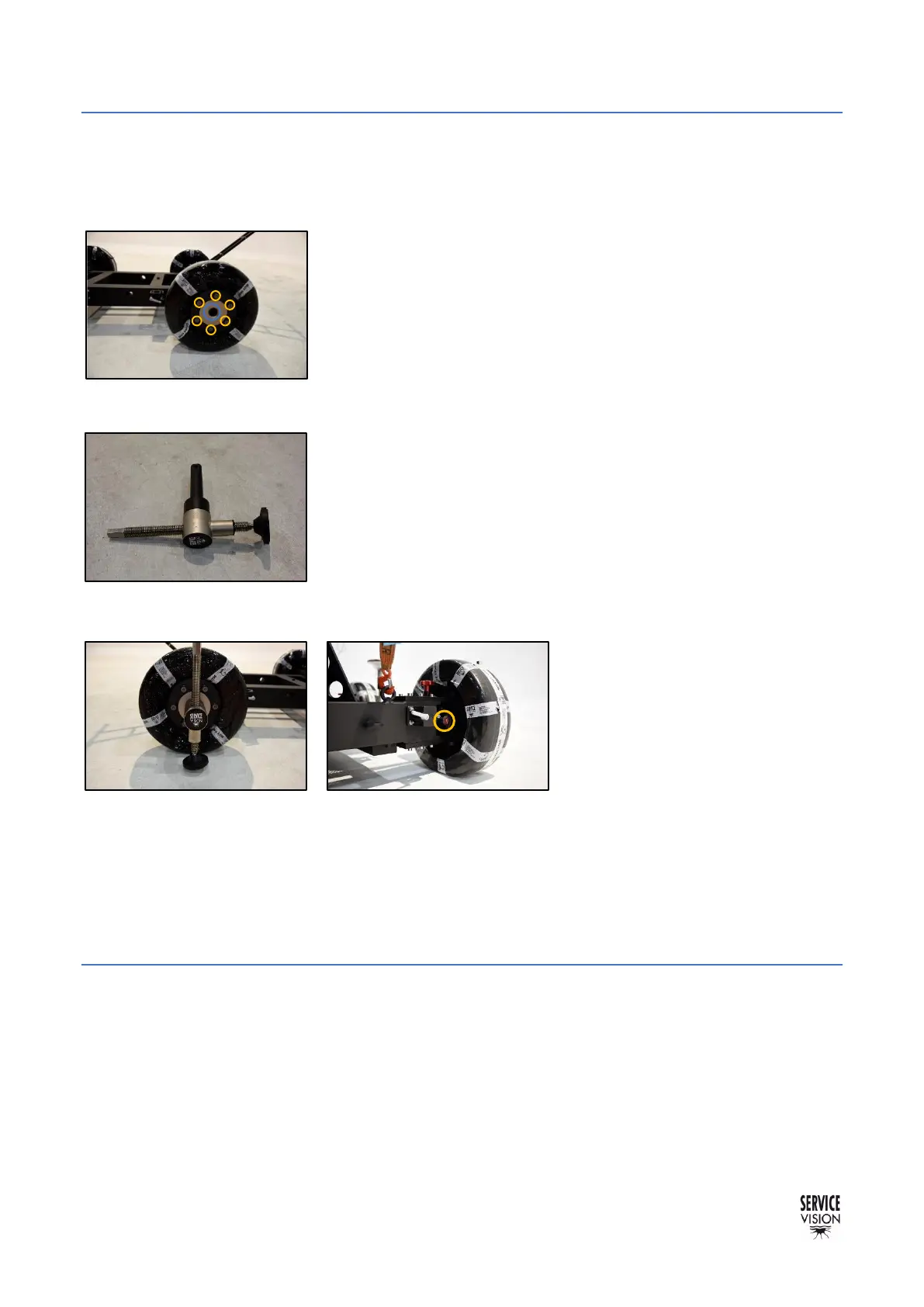M14x30mm). The holes inside the wheel axes are prepared to introduce the leveling jack.