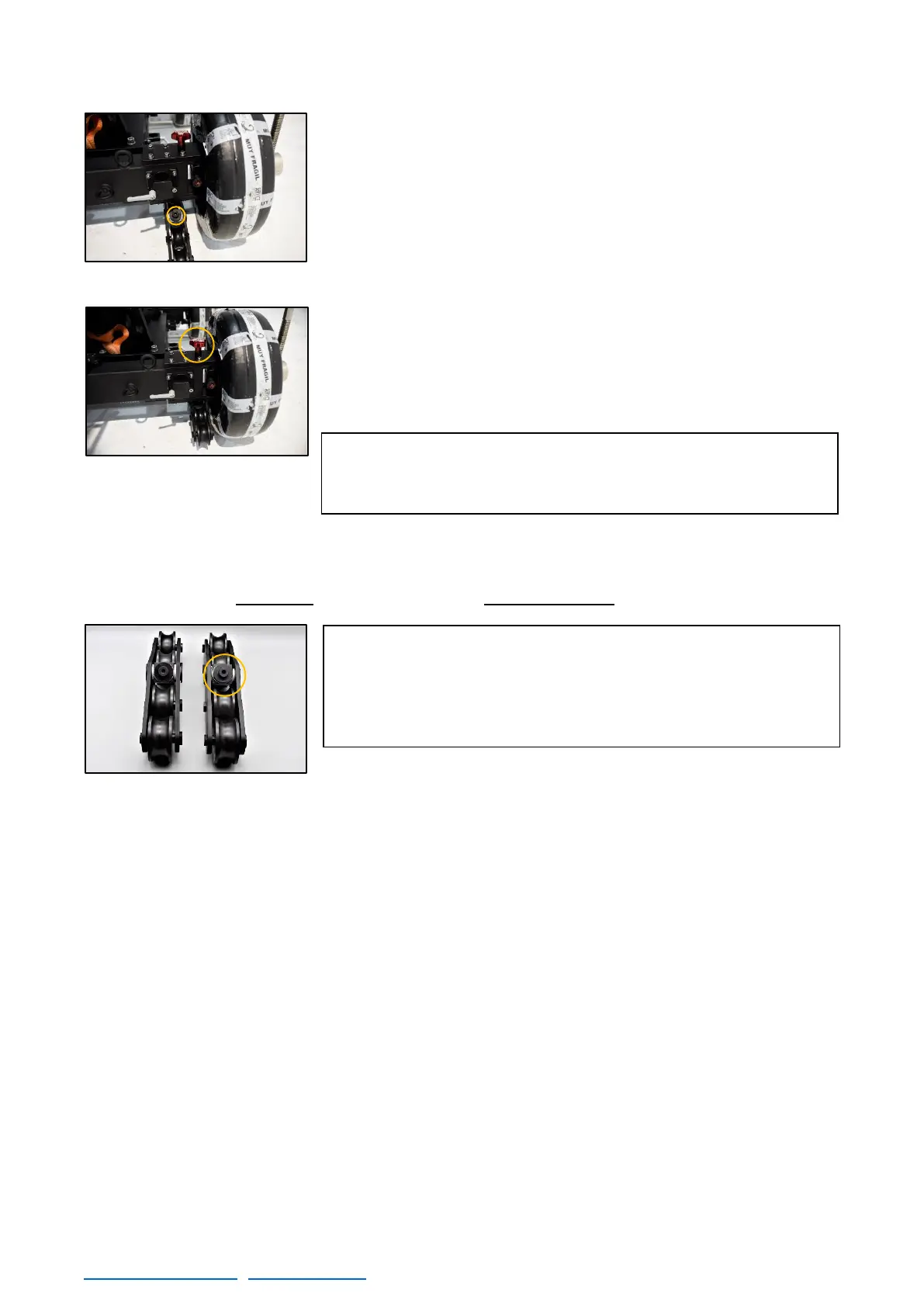 Notice before assembling the track wheels that there are 2 of them with a movable axis side to side.