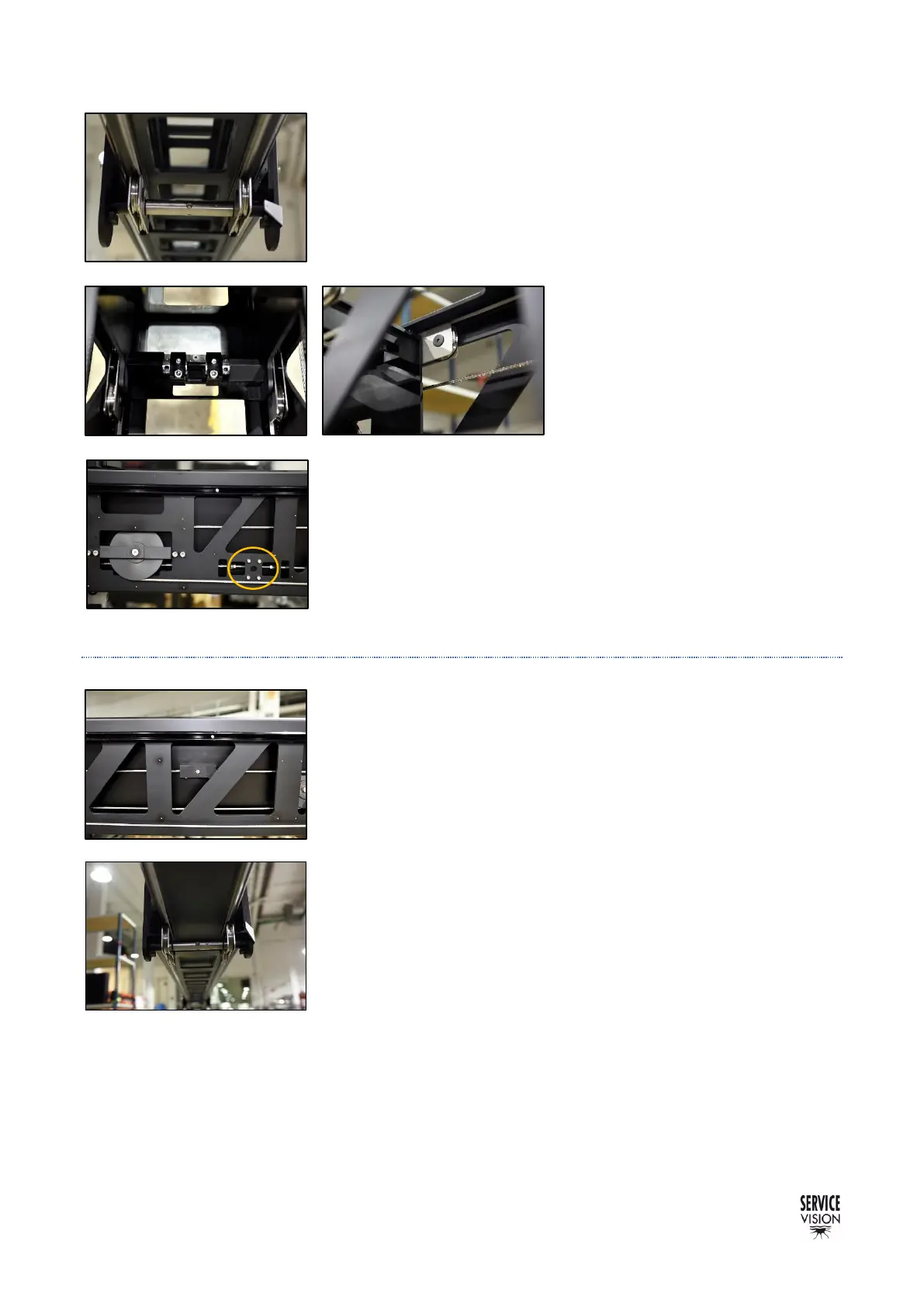 metallic sets of wheels sliding along rails and this one and the fourth