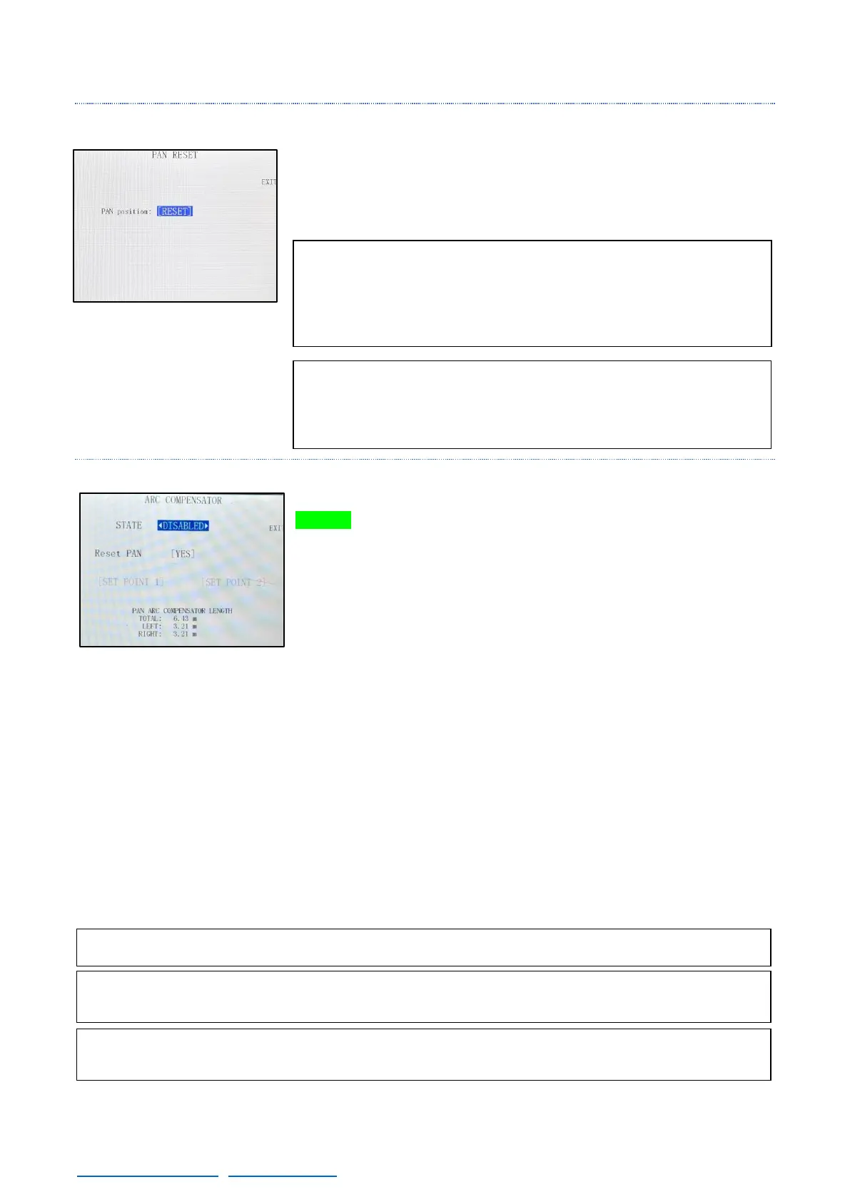 those two points. The Pan arc compensation length will be displayed on this screen to inform the user