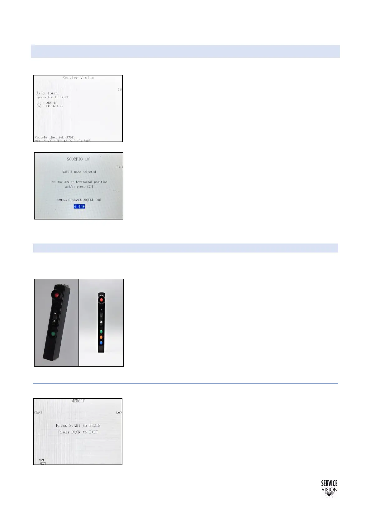 Both controls (crane & head control) must have a screen display