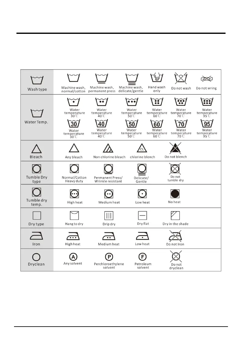 temperature, wash cycles, and ironing methods. Don’t forget to give a glance to these useful indications!