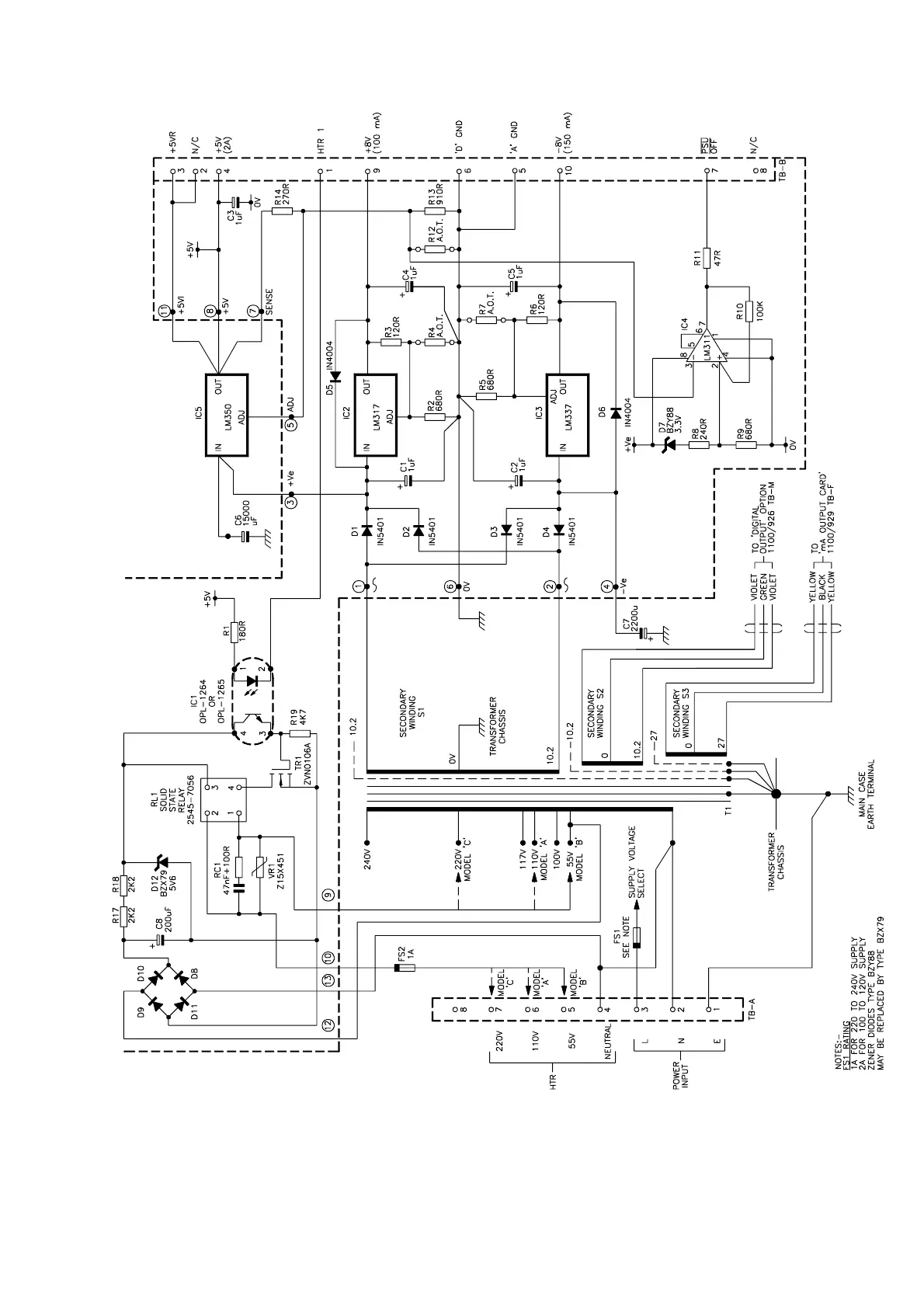 Note Model A,B,C refers to the variant of power supply, not to the model A,B,C, of the Transducer Unit.