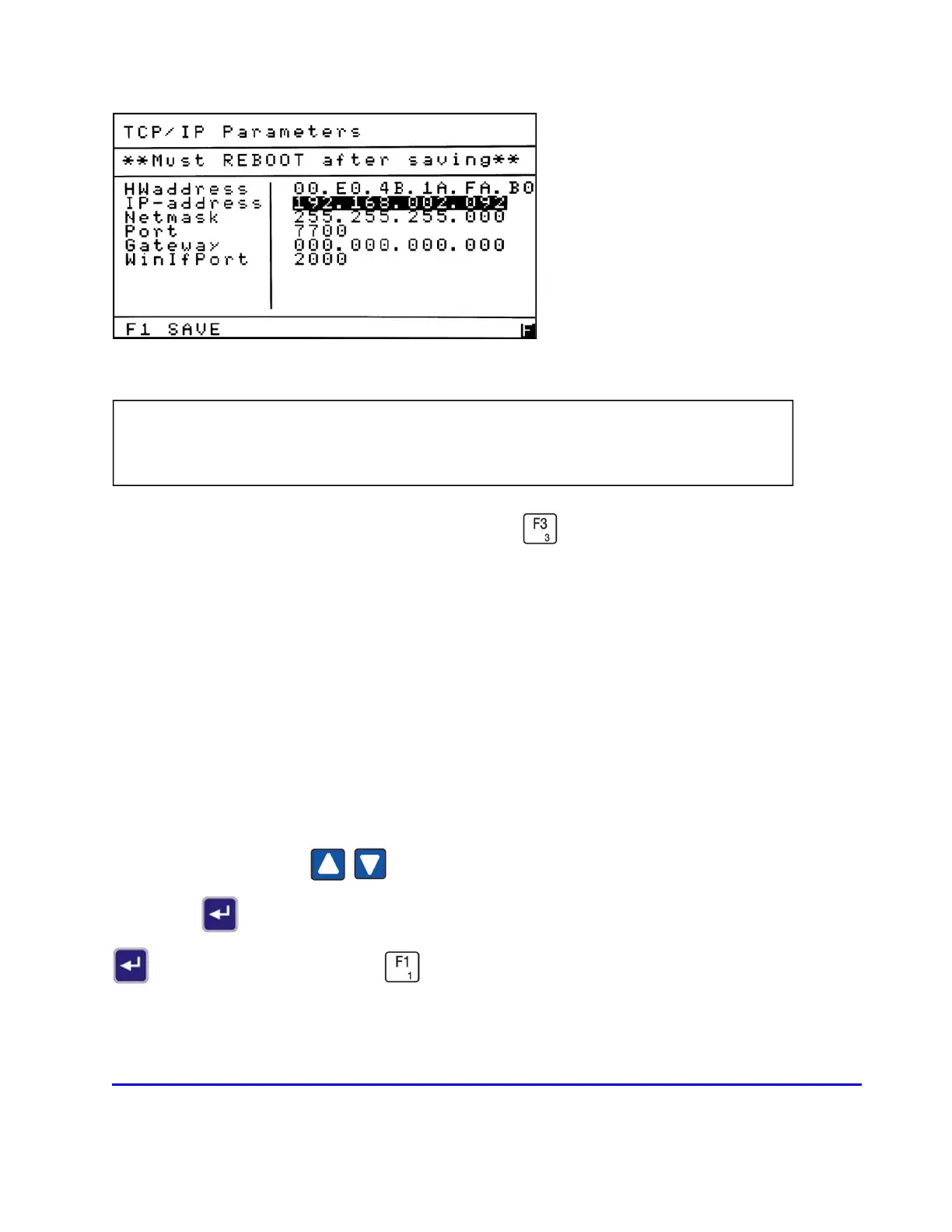 NOTE: The TCP/IP Parameters screen is used for setting up the parameters for