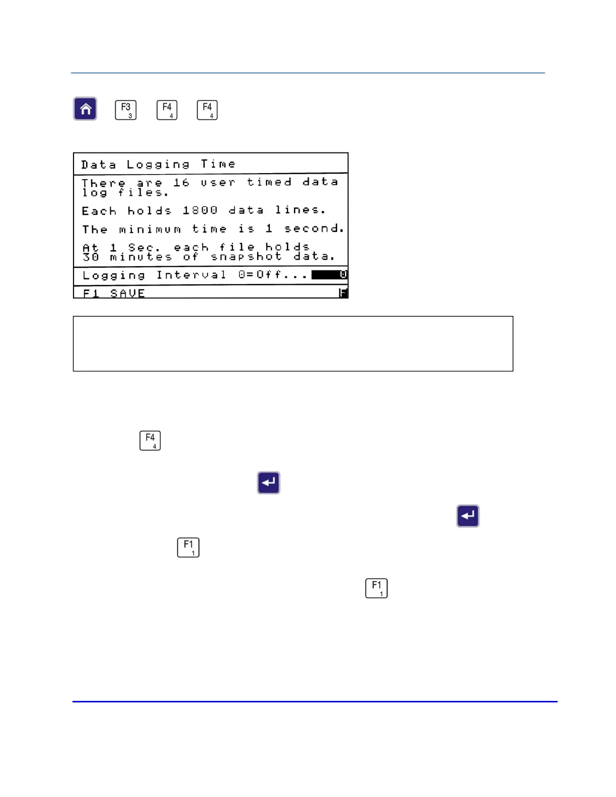 To turn Data Logging on, press Enter to open the field, and change the Logging Interval