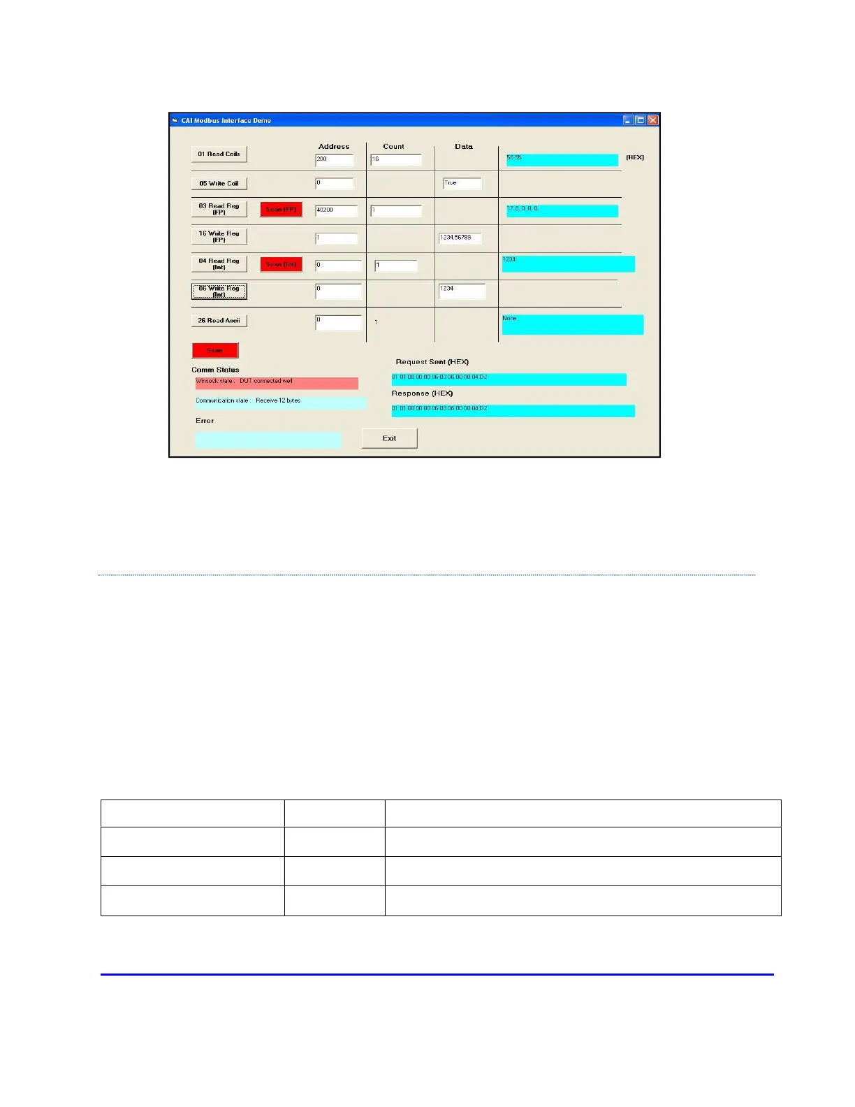 per register. The normal response returns the function code, starting address and quantity of