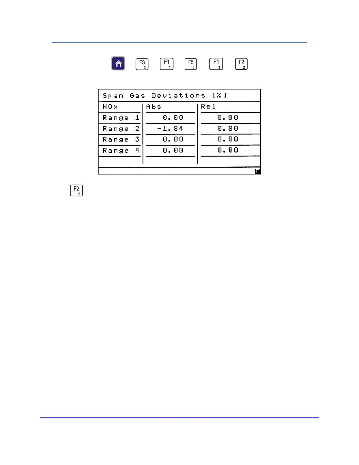 Press from the Manual Deviations menu to view the Span Gas Deviations screen.