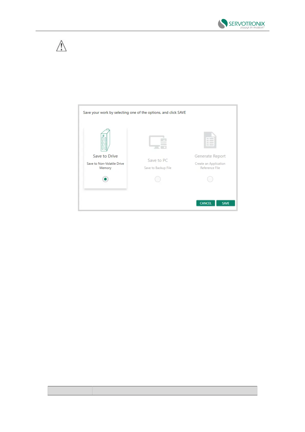 ⚫ Click Save to Drive to save the parameters in the drive RAM to its permanent memory.