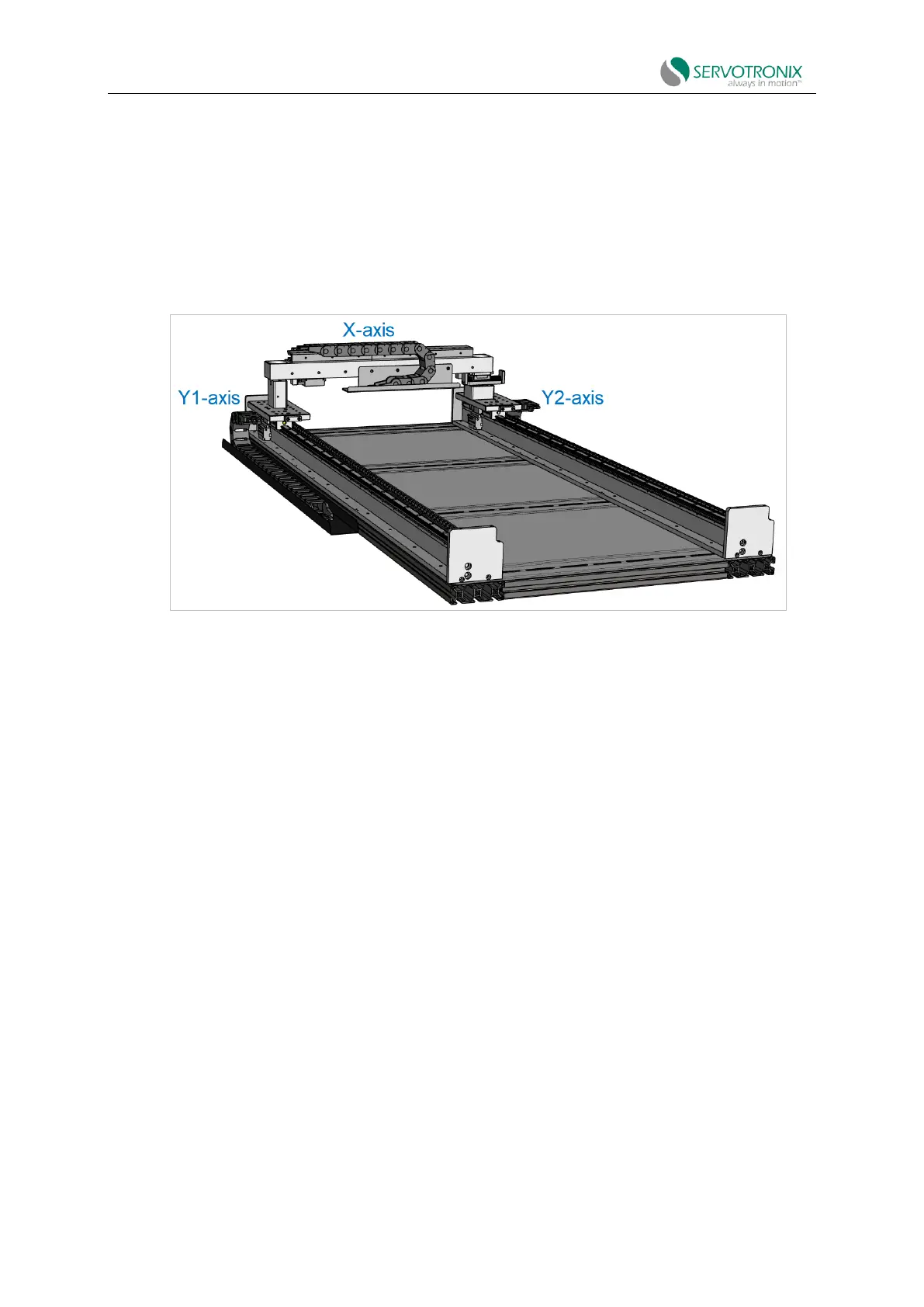 The gantry system use two parallel axes (Y1 and Y2) to control a single linear axis that is