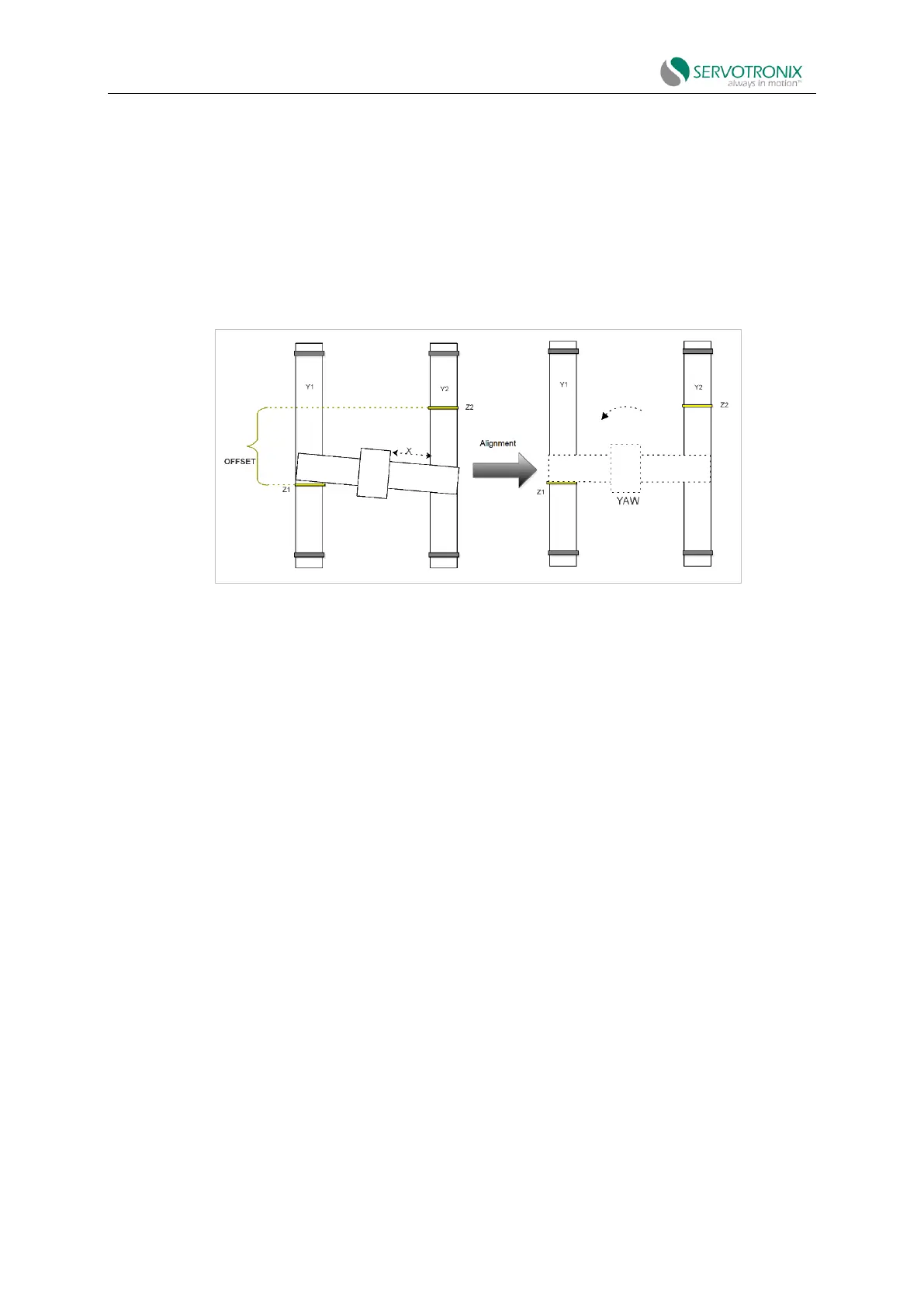 Therefore, no yaw alignment is required. But in a flexible gantry system, offset may occur. Use