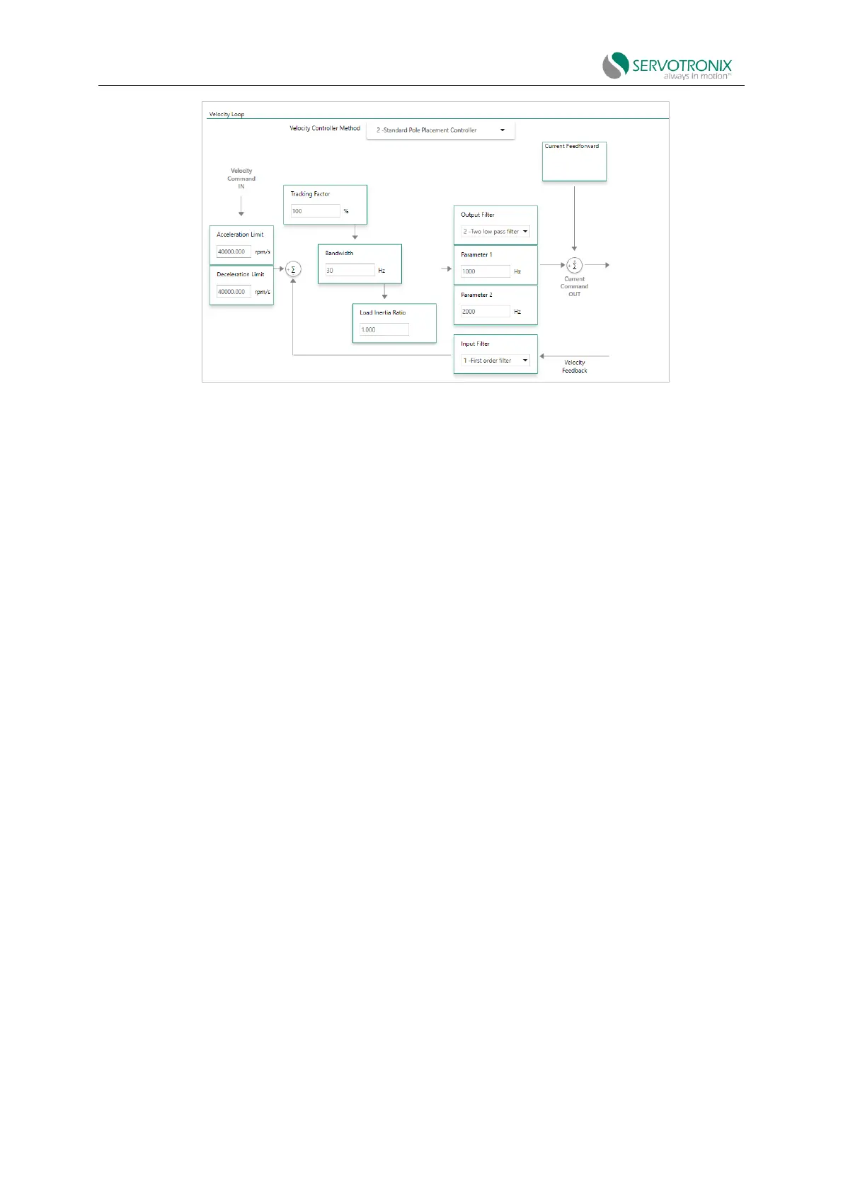 Figure 7-5 Velocity control loop - standard pole placement (PP) controller