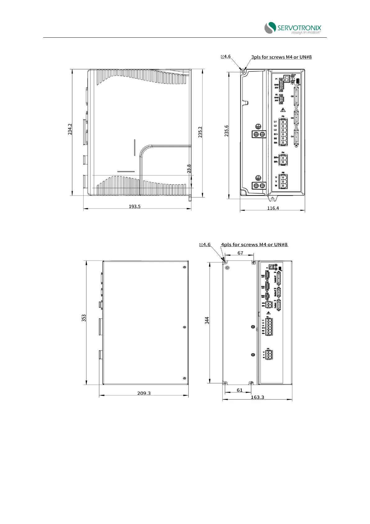 Figure 3-4 CDHD2S-024/CDHD2S-030 (high-voltage) - dimensions (mm)