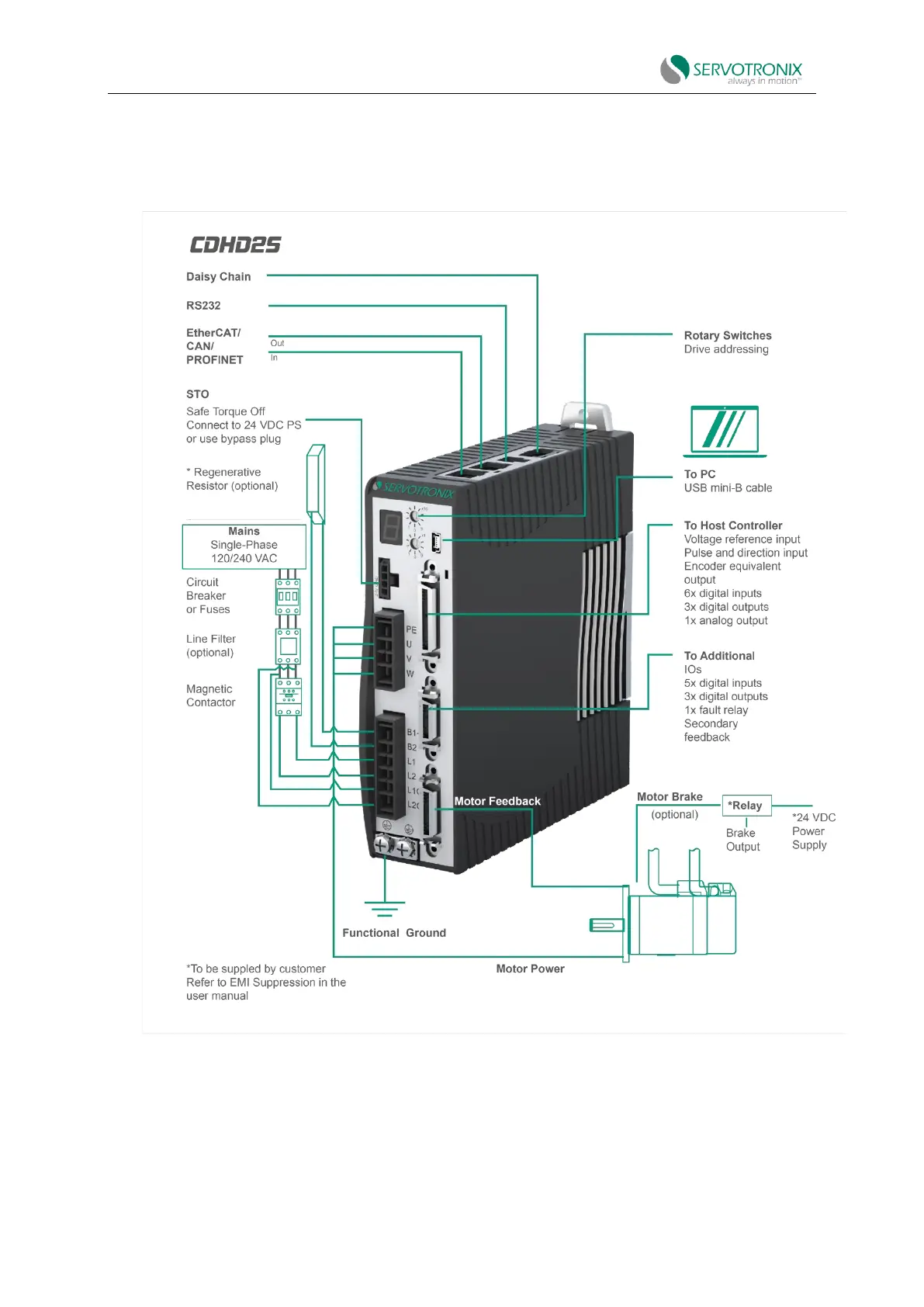 Servotronix CDHD2S - System Wiring; CDHD2 S-1 D5;003 (Medium-Voltage) System Wiring