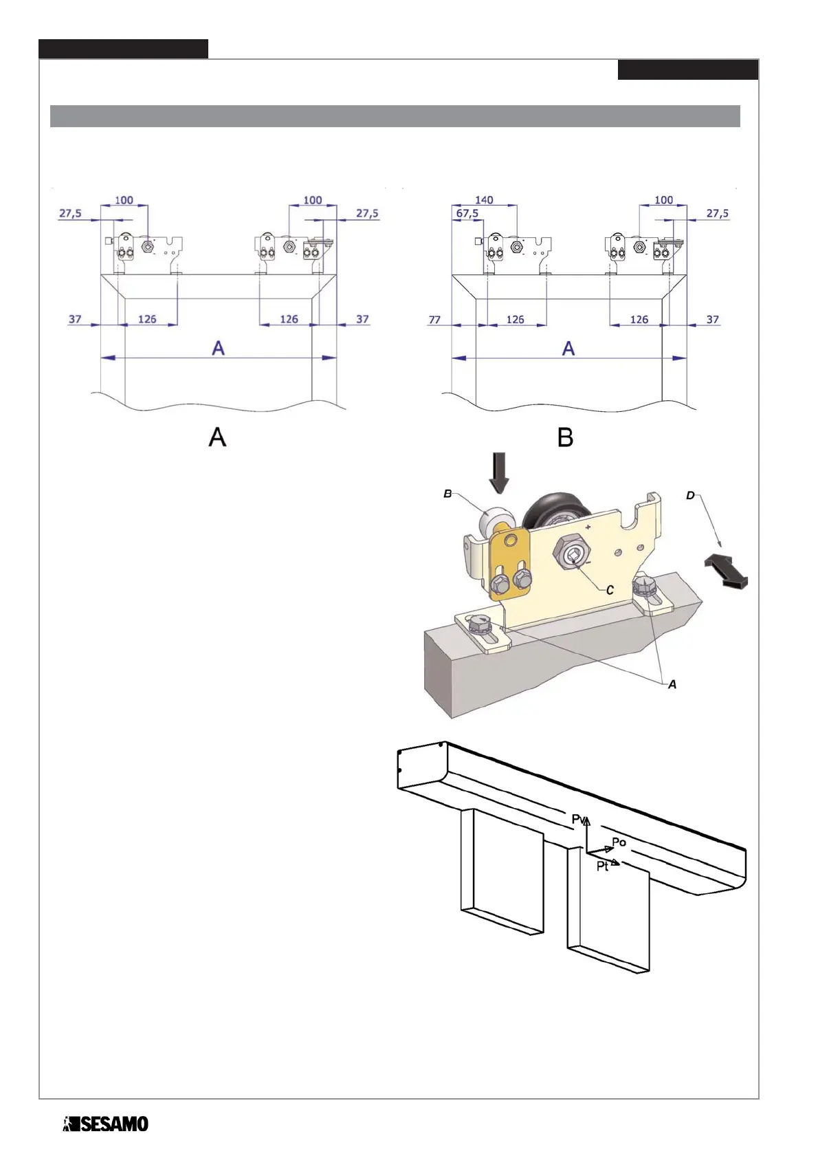 Before tightening bolts A, carefully check that the carriage wheel vertical surface (that coincides with the carriage vertical