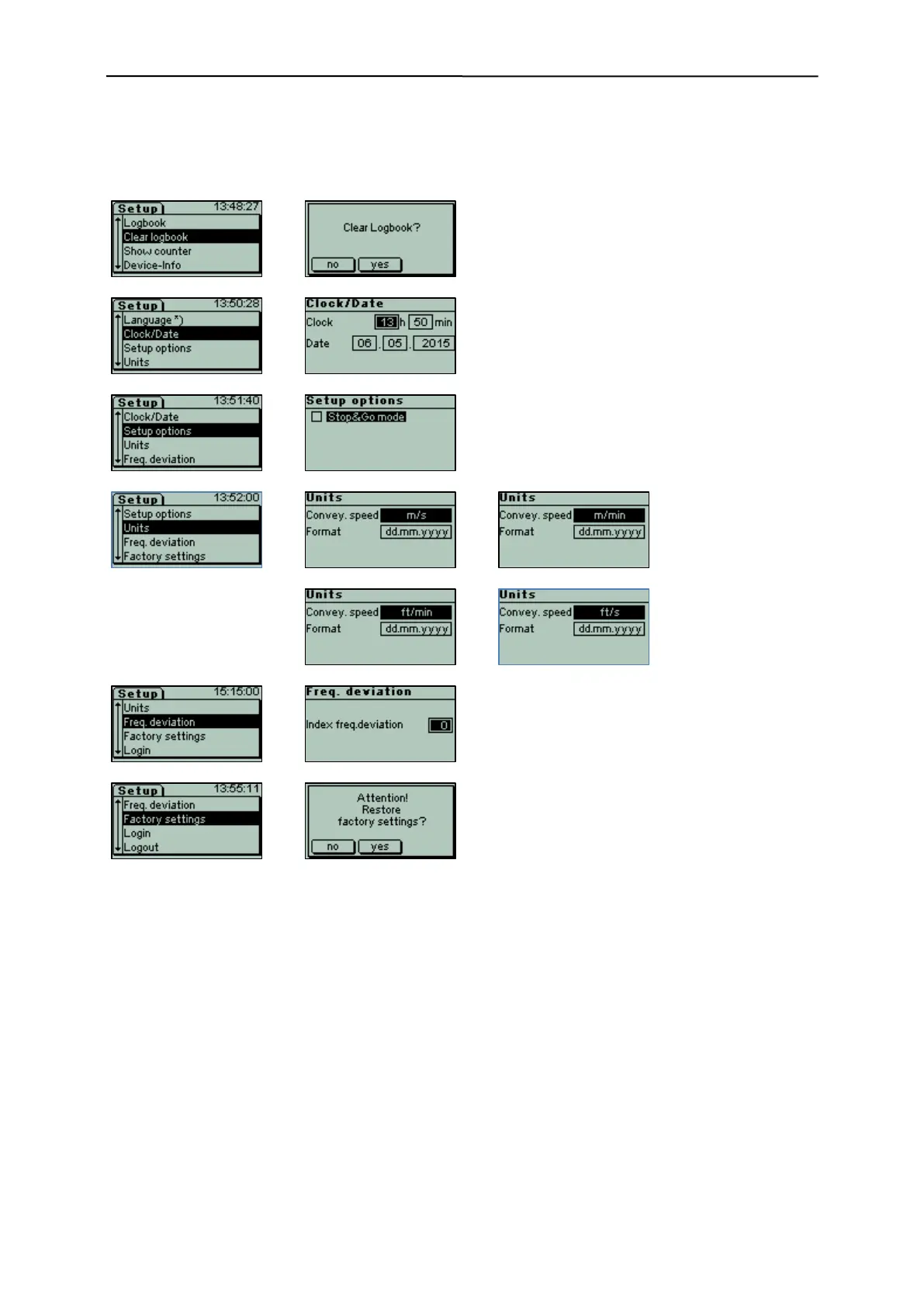 In addition to the standard menu items the following menu items can be selected in setup level 1.