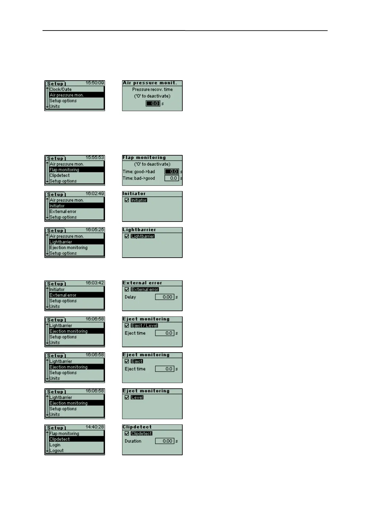 ing settings can be made in the setup menu for sensor 1 and sensor 2.