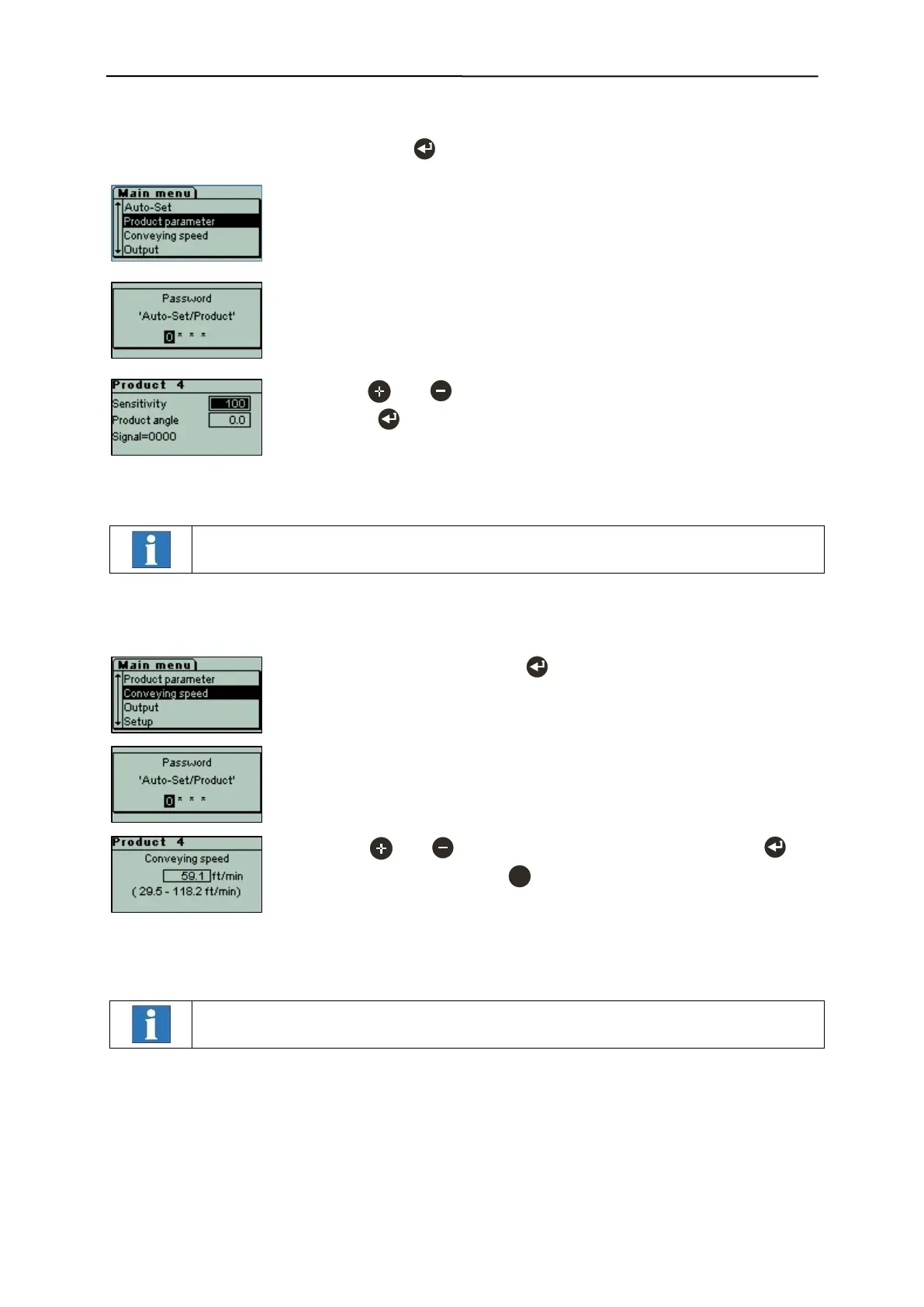 - Select "Conveying speed" with .