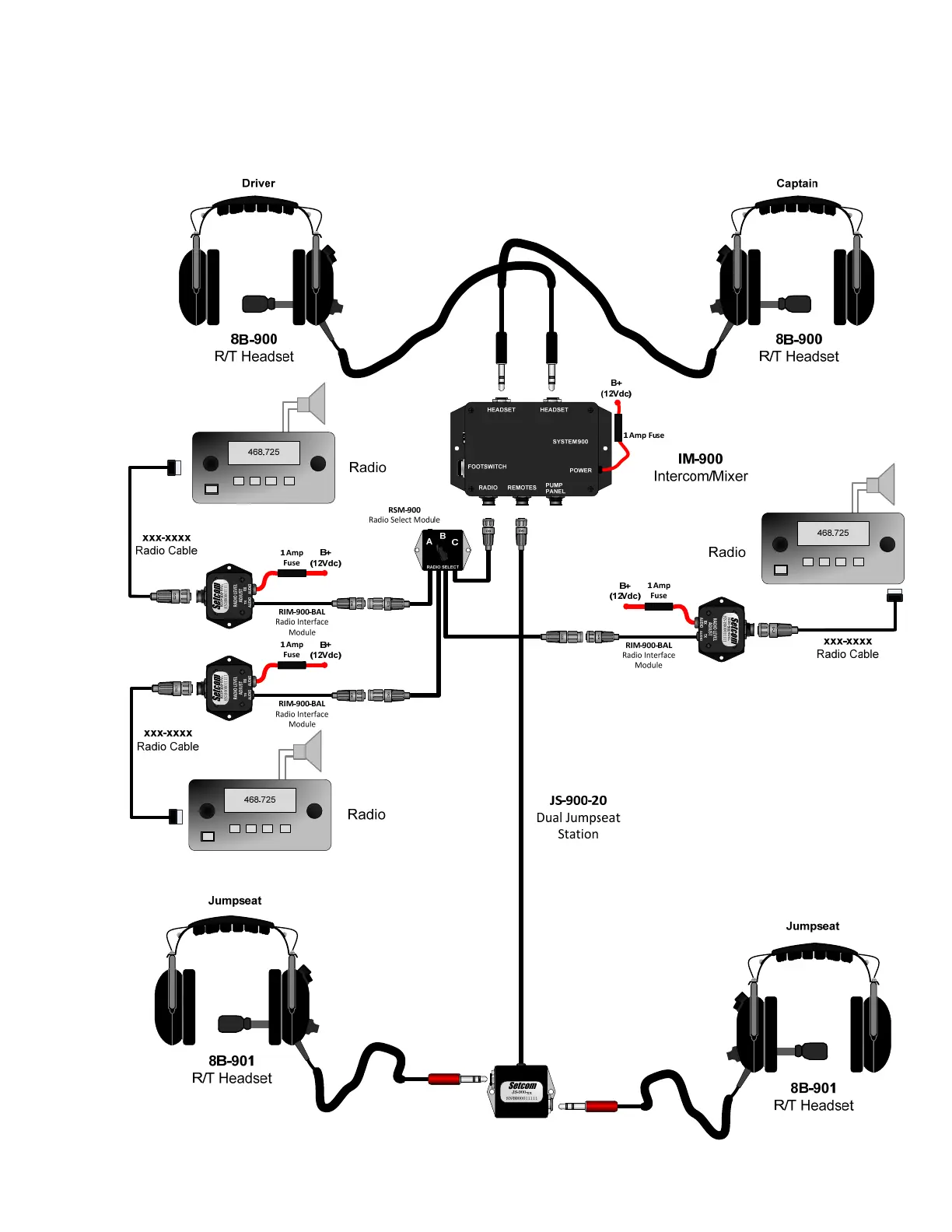 Setcom IM-900 - Four Crew - Two Radios - EMS System
