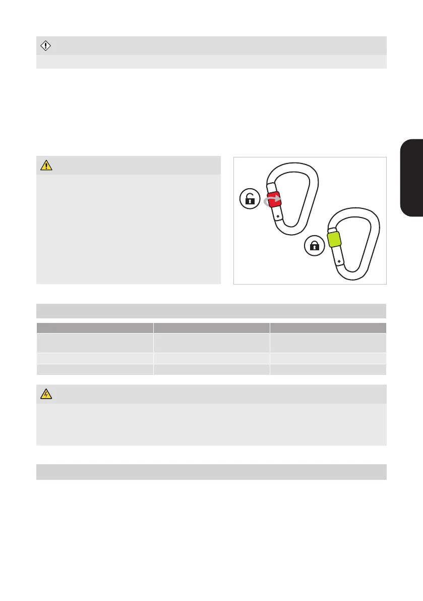 • Karabiner mit manueller Verschlusssicherung müssen