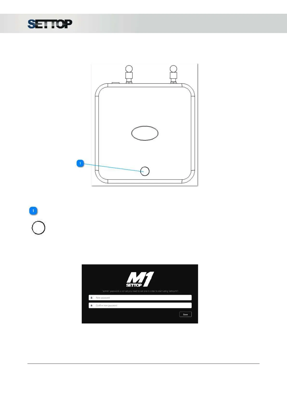3. Reset password access: press the button 3 times when the device is on. The next time the Settop M1